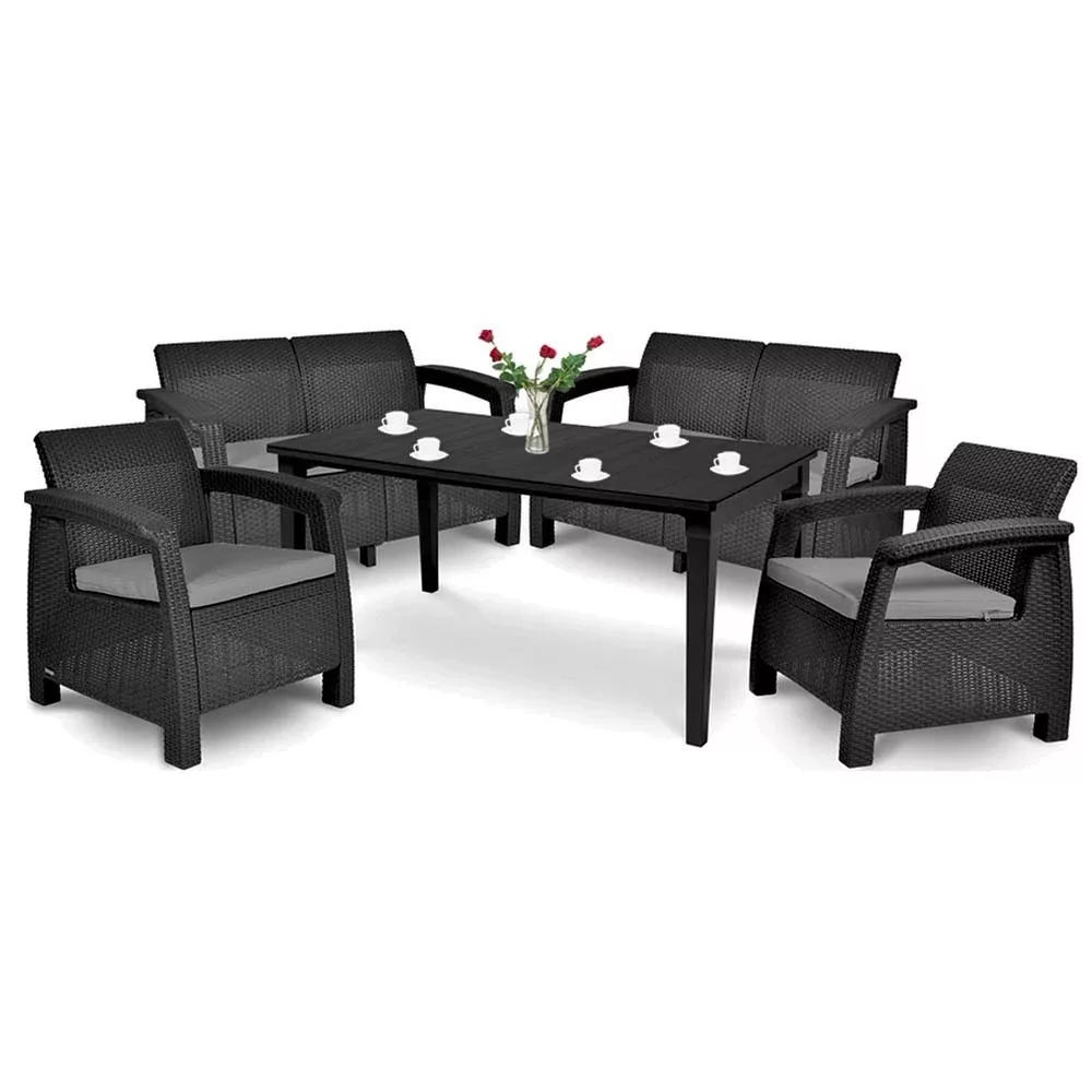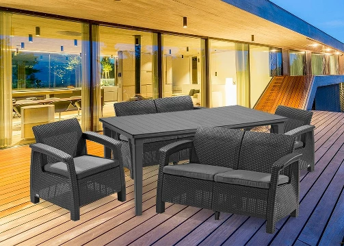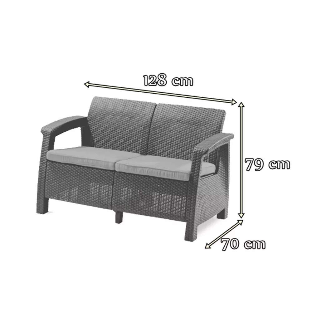 Zestaw mebli ogrodowych Curver Love Duo jest łatwy w utrzymaniu. Nie trzeba go impregnować ani malować. Wystarczy zwykła szmatka i odrobina detergentu. Poduszki dołączone do sofy i fotela mają zdejmowane poszewki (zapinane na zamek błyskawiczny), dzięki czemu łatwo wyprać je w pralce na niskim programie. Fakt, że producent stosuje jednolitą kolorystykę i wzornictwo mebli Corfu jest z pewnością zaletą.