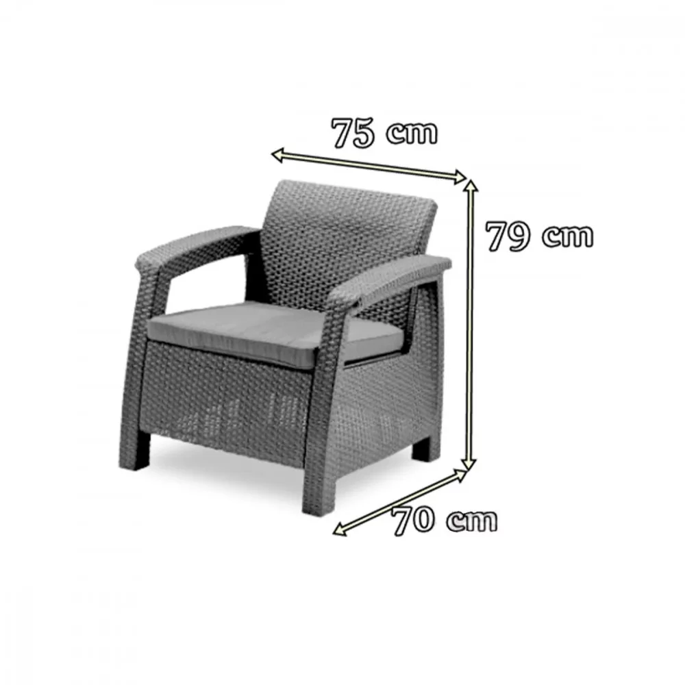 Zestaw mebli ogrodowych Corfu Love duo to idealny element do dekoracji ogrodu, balkonu lub tarasu. Jego prosty kształt i minimalistyczny wygląd sprawiają, że jest uniwersalny i można go dopasować do każdego układu. Praktyczny i niedrogi, może być również pozostawiony na zewnątrz przez cały rok. Sam zestaw sprawia wrażenie wykonanego z drewna, ale w rzeczywistości jest wykonany z wysokiej jakości materiału.