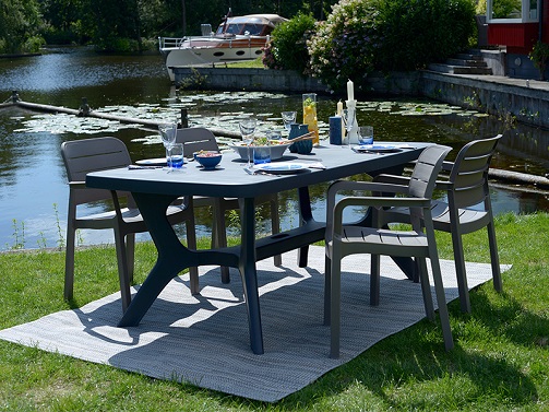 Jest wysoce odporny na stres związany z codziennym użytkowaniem oraz na działanie czynników atmosferycznych, słońca, deszczu i promieniowania UV. Może zachować swoje pierwotne piękno przez wiele lat. Szeroki, owalny blat stołu może wygodnie pomieścić 6 osób.