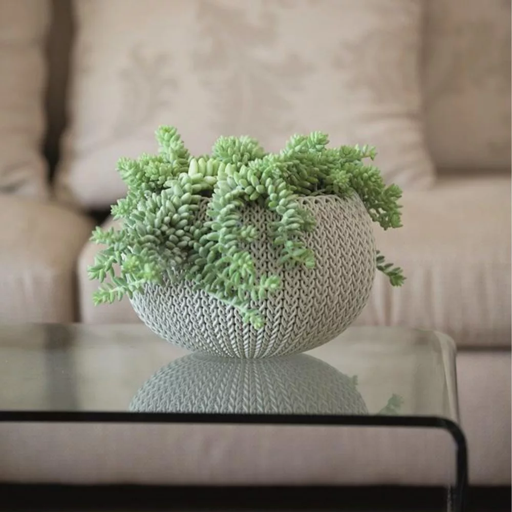 Doniczka COZIES M to połączenie nowoczesnej formy i absolutnie oryginalnej struktury powierzchni przypominającej szydełkowe wzory. Konstrukcja doniczki składa się z 2 elementów: wewnętrznej doniczki i eleganckiej osłony, która ułatwia przesadzanie roślin i kwiatów.