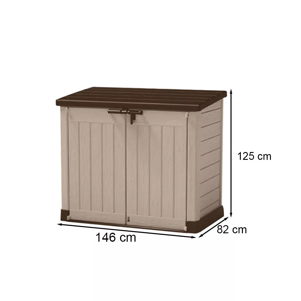 Duża przestrzeń Store in out max jest idealna do przechowywania sprzętu ogrodowego, takiego jak kosiarki, meble ogrodowe lub sprzęt sportowy. Przestronne wnętrze zapewnia miejsce na wszystkie narzędzia ogrodowe.