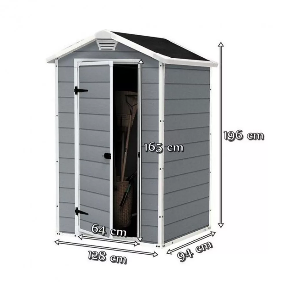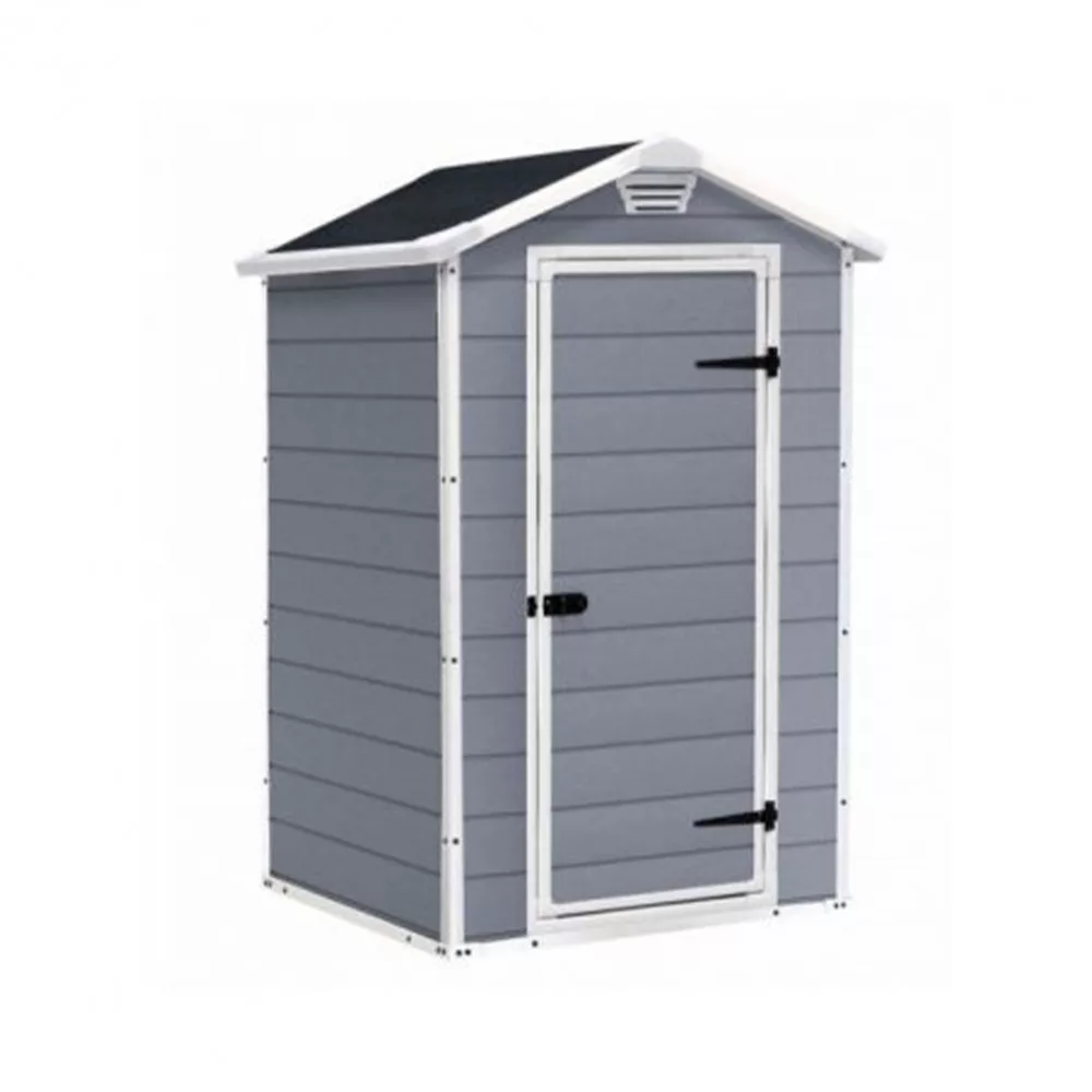 Niezwykle kompaktowy i wytrzymały schowek Manor 4x3 oferuje sprytne rozwiązanie do przechowywania w ciasnych przestrzeniach, zwłaszcza między domem a ogrodzeniem. Posiada odporną na warunki atmosferyczne, dwuścienną konstrukcję i płytę podłogową, która przechowuje przedmioty czyste i suche. Ta szopa może być bezpiecznie wentylowana, zamykana dla bezpieczeństwa i łatwo montowana przy użyciu narzędzi domowych.