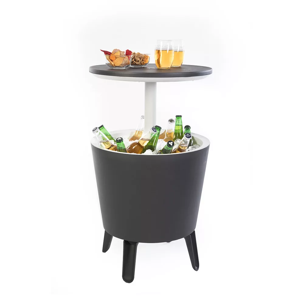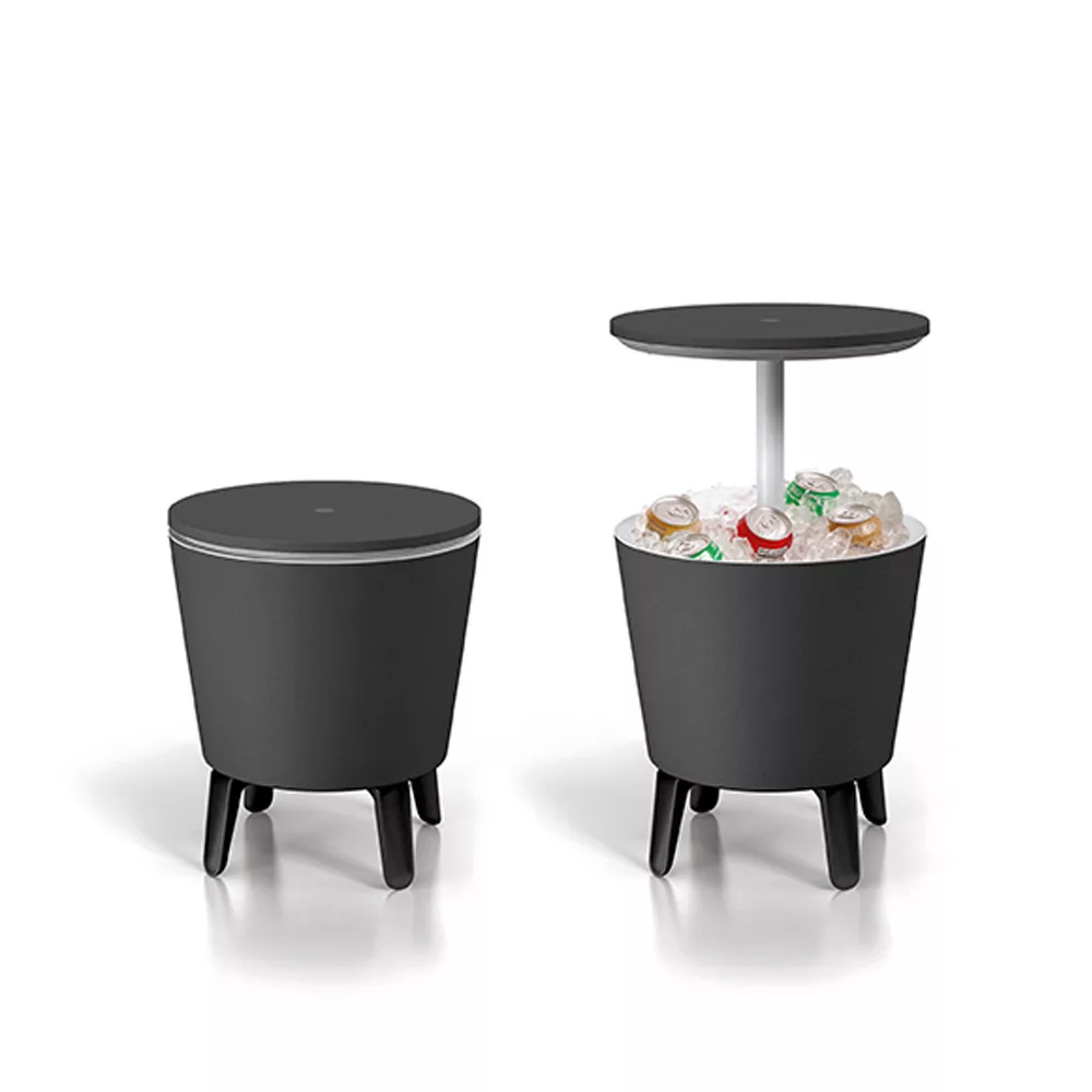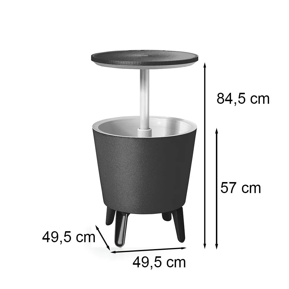 Elegancki design, wykończenie i funkcjonalność sprawiają, że Cool Bar jest doskonałym wyborem na ogrodowe spotkania towarzyskie i rodzinne. Jego wymiary (50 x 50 x 57-85 cm) sprawiają, że jest łatwy do przenoszenia i zajmuje niewiele miejsca, dzięki czemu zmieści się w mniejszych przestrzeniach.