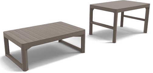 Zestaw mebli ogrodowych Corfu Large Lyon w kolorze cappuccino świetnie prezentuje się w każdej aranżacji. Składa się z dwóch dwuosobowych sof, dwóch foteli, sześciu płaskich poduszek i stolika kawowego. Zestaw pasuje nie tylko do ogrodu, ale może być również umieszczony na tarasie obok restauracji lub kawiarni. Meble Korfu nadają się zarówno do użytku wewnętrznego, jak i zewnętrznego. Są stonowane, utrzymane w grafitowej kolorystyce i uniwersalnych kształtach, a ich design to ukłon w stronę światowych trendów. Zestaw ogrodowy z podnoszonym stołem Korfu Lyon Duo zapewnia duży komfort użytkowania.