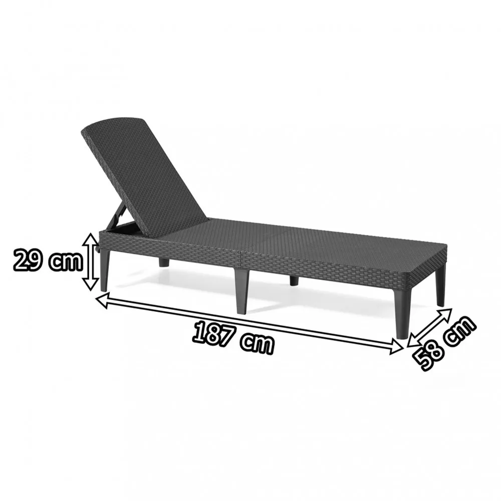 Leżak ma elegancki wygląd przypominający technorattan, różnica jest widoczna tylko z bliska. Leżak składany Jaipur posiada regulowane czterostopniowe oparcie, które można dowolnie ustawiać.