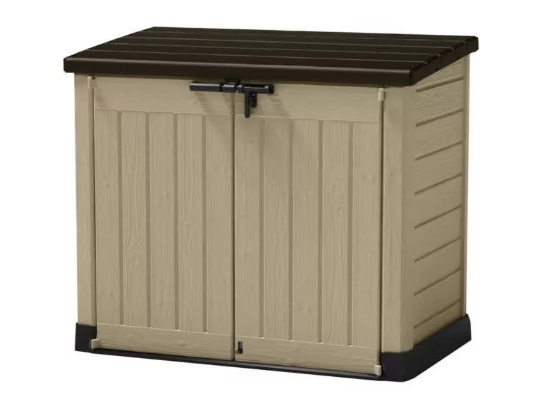 Plastikowy pojemnik ogrodowy Midi to produkt przyjazny dla środowiska. Większość materiałów użytych do jego produkcji pochodzi z recyklingu. Prostokątne podwójne drzwi mają 104,8 cm szerokości i są wyposażone w zatrzaskowy zamek. Wewnętrzne przestrzenie są dobrze chronione przed czynnikami zewnętrznymi i dobrze wentylowane, co oznacza, że nie ma obaw o wilgoć i pleśń. Dodatkowym atutem szafki Keter Store-It-Out-Midi jest możliwość zamontowania dodatkowych półek (półki nie są dołączone do zestawu).