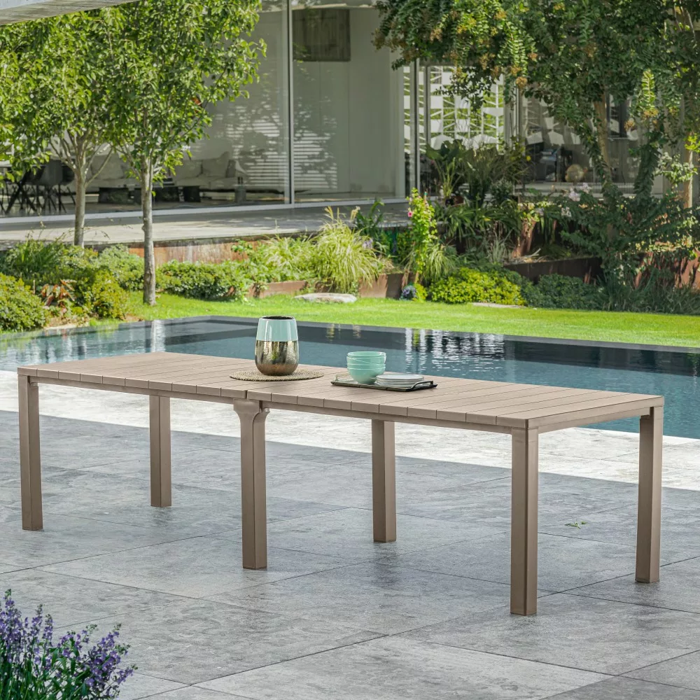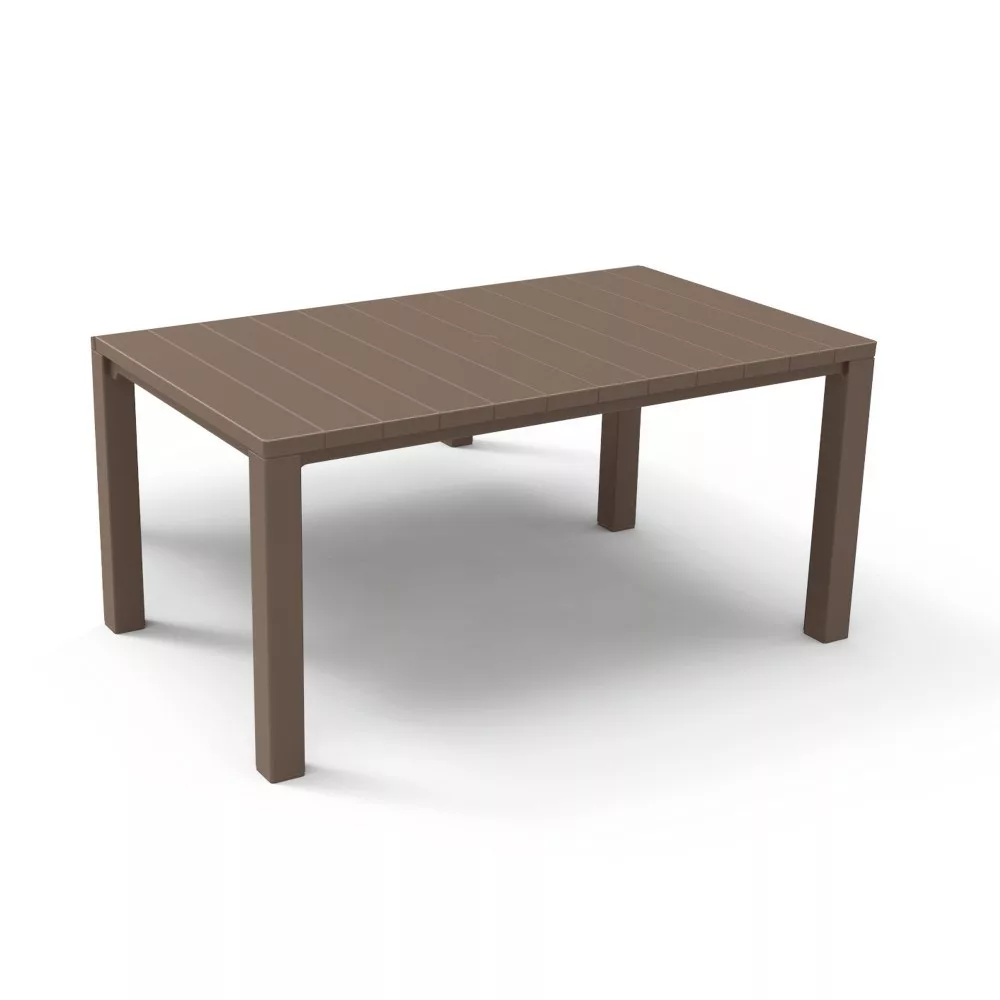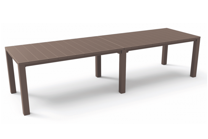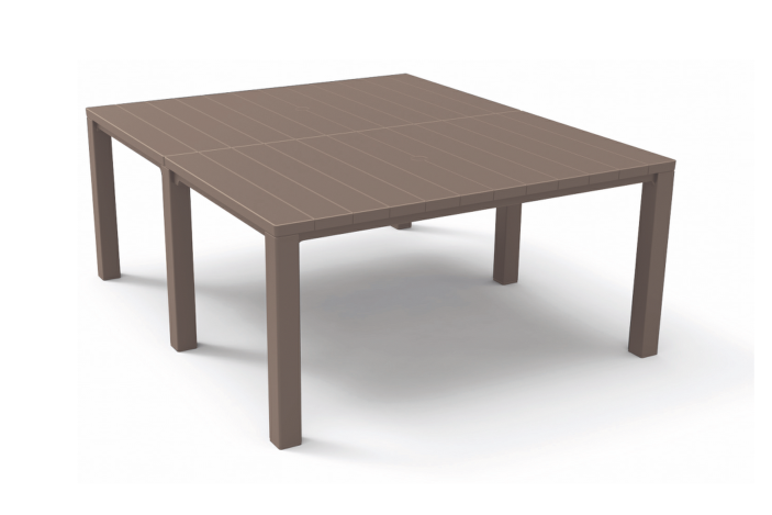 Podwójny plastikowy stół ogrodowy Julie to idealne rozwiązanie do okazjonalnych dużych spotkań z rodziną lub przyjaciółmi na patio lub w ogrodzie, a także do siedzenia dla dużej liczby gości. Doskonała alternatywa dla dostępnych na rynku produktów z syntetycznego rattanu. Prezentowany stół ogrodowy różni się od swoich odpowiedników tym, że można go stworzyć w 3 konfiguracjach - stoły z połączonymi dłuższymi bokami, stoły z połączonymi krótszymi bokami oraz wersja stołu do codziennego użytku.