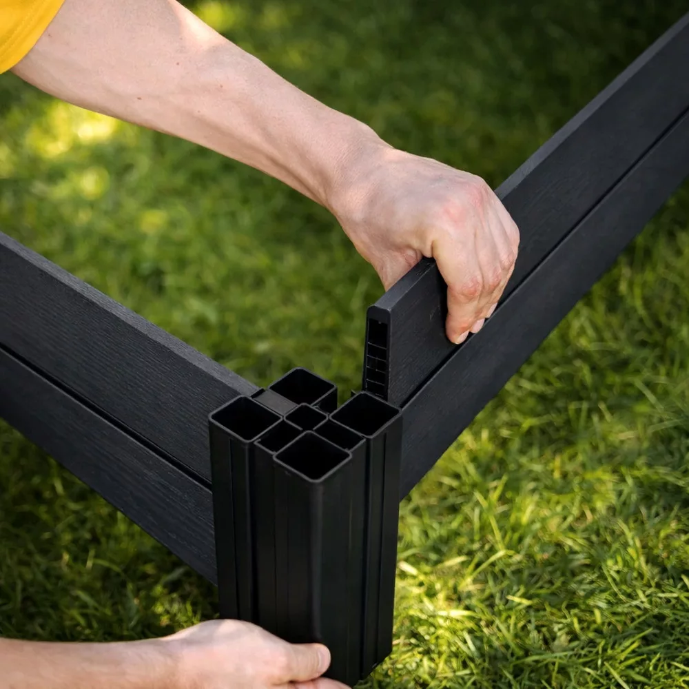 A virágágyások a Keter legmodernebb Evotech™ kompozit anyagából készülnek, amely a fa természetes megjelenését ötvözi a műanyag előnyeivel. Az anyag kiemelkedően szilárd, UV-álló és időjárásálló, nem korhad, nem vetemedik, és hosszú távon is megőrzi esztétikus megjelenését.