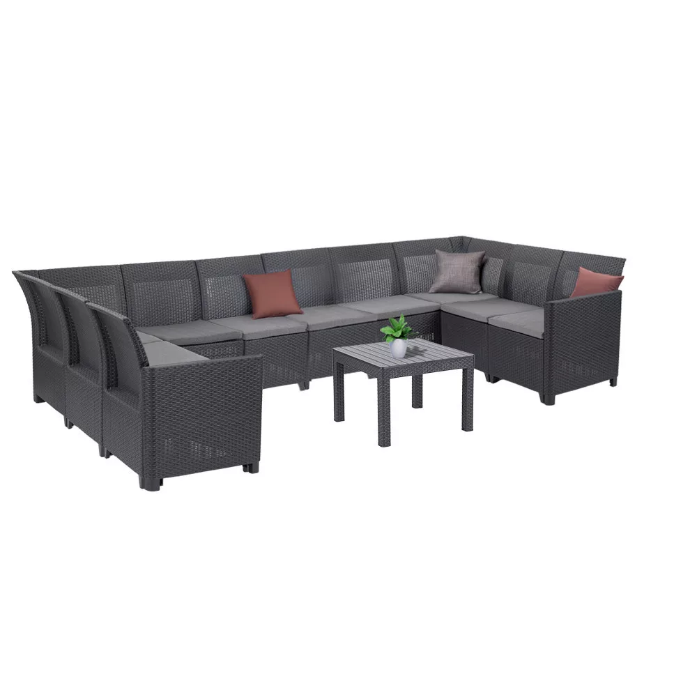 Modułowa (tj. rozszerzalna, przestawna i zmienna dzięki zdejmowanym podłokietnikom) rodzina mebli ogrodowych zaprojektowana dla 10 osób, wykonana z tworzywa sztucznego z efektem rattanu, a jednocześnie odporna na warunki atmosferyczne.