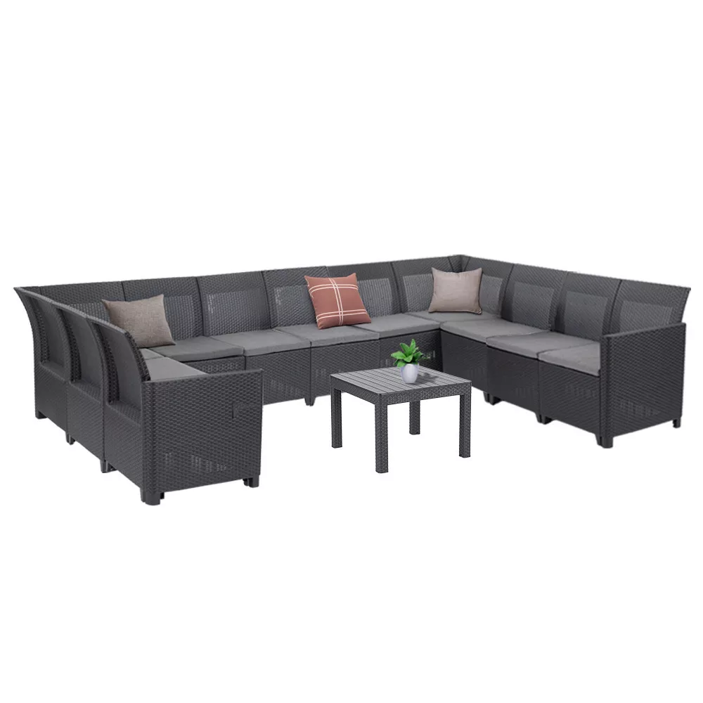 11-osobowa sofa narożna Claire XII ze stołem orlando to najwyższej jakości, wszechstronny mebel wypoczynkowy, który można dostosować do własnych potrzeb.Rozszerzalny system modułowy pozwala na późniejsze dodanie dodatkowych elementów - azdejmowane podłokietniki pomagają, jeśli chcesz mieć spójną sofę lub oddzielne fotele.