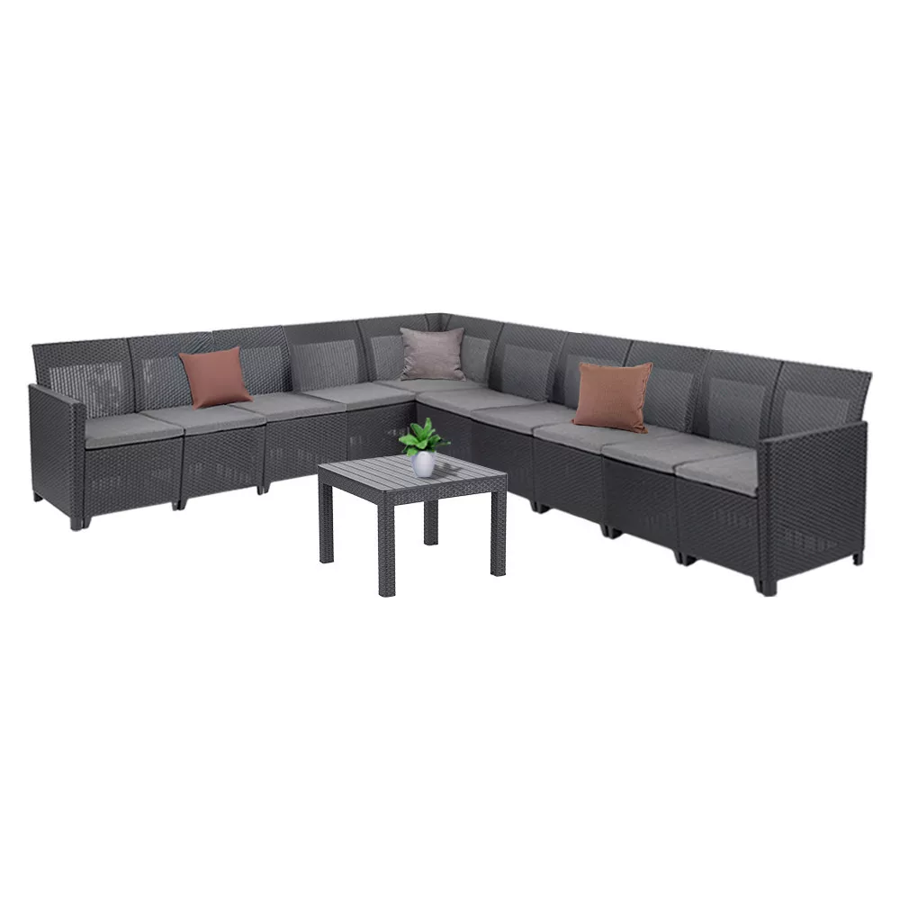 Dzięki łatwym w montażu elementom zestaw można zmieniać, rozbudowywać, demontować, a nawet zdejmować podłokietniki. Można go również złożyć i podnieść, dzięki czemu można go dostosować do kształtu tarasu lub balkonu.