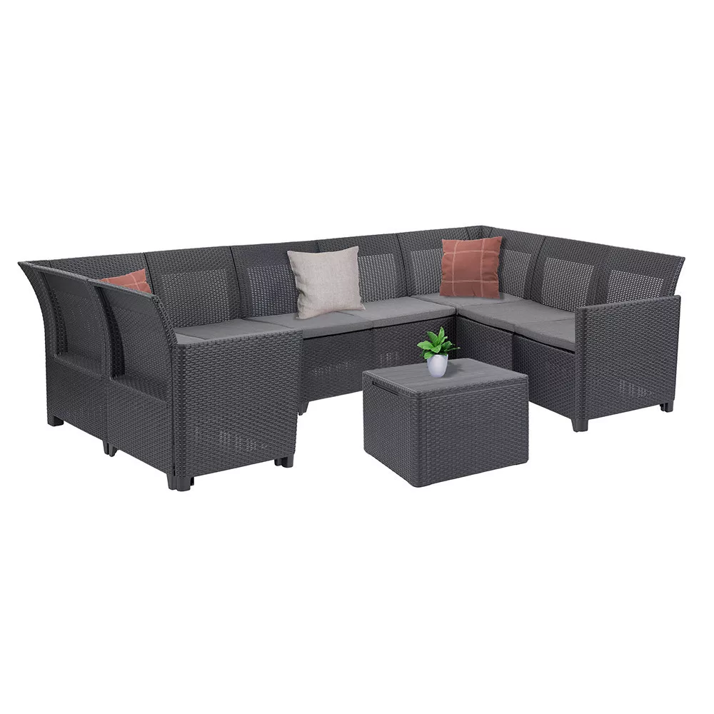 Claire VII 8-osobowy zestaw narożny ze stołem z poduszkami