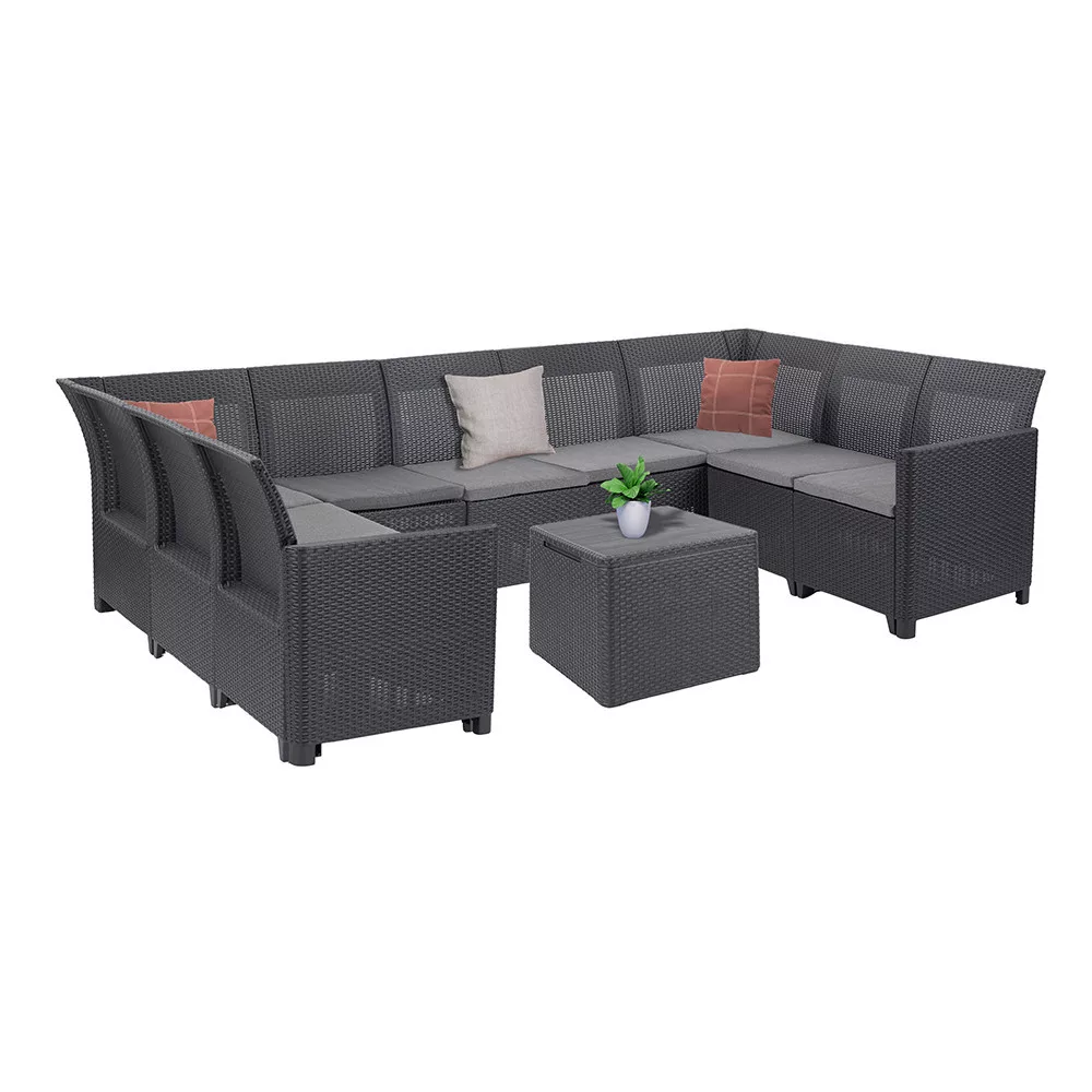 Claire VII 9-osobowy zestaw narożny ze stołem z poduszkami
