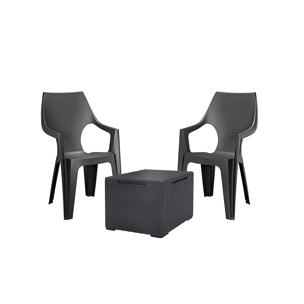 Ożyw swój balkon dzięki zestawowi mebli ogrodowych Dante Balcony, łączącemu nowoczesny design i funkcjonalność. Ten stylowy zestaw zawiera poręczny stół ogrodowy Vigo i dwa wygodne krzesła ogrodowe Dante z wysokim oparciem, które są odporne na warunki atmosferyczne i nie wymagają konserwacji.