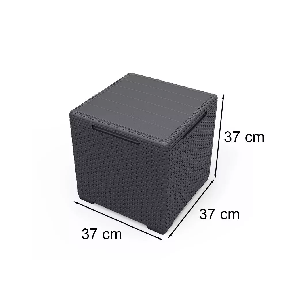 Ogrodowy stół do przechowywania Vigo to doskonały wybór, jeśli szukasz wielofunkcyjnych mebli na taras lub balkon. Plastikowy stolik w kolorze grafitowym z efektem rattanu jest nie tylko wyjątkowym i nowoczesnym dodatkiem do Twojego patio, ale służy również jako przydatne miejsce do przechowywania.