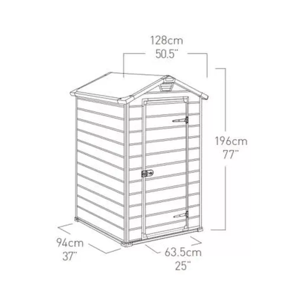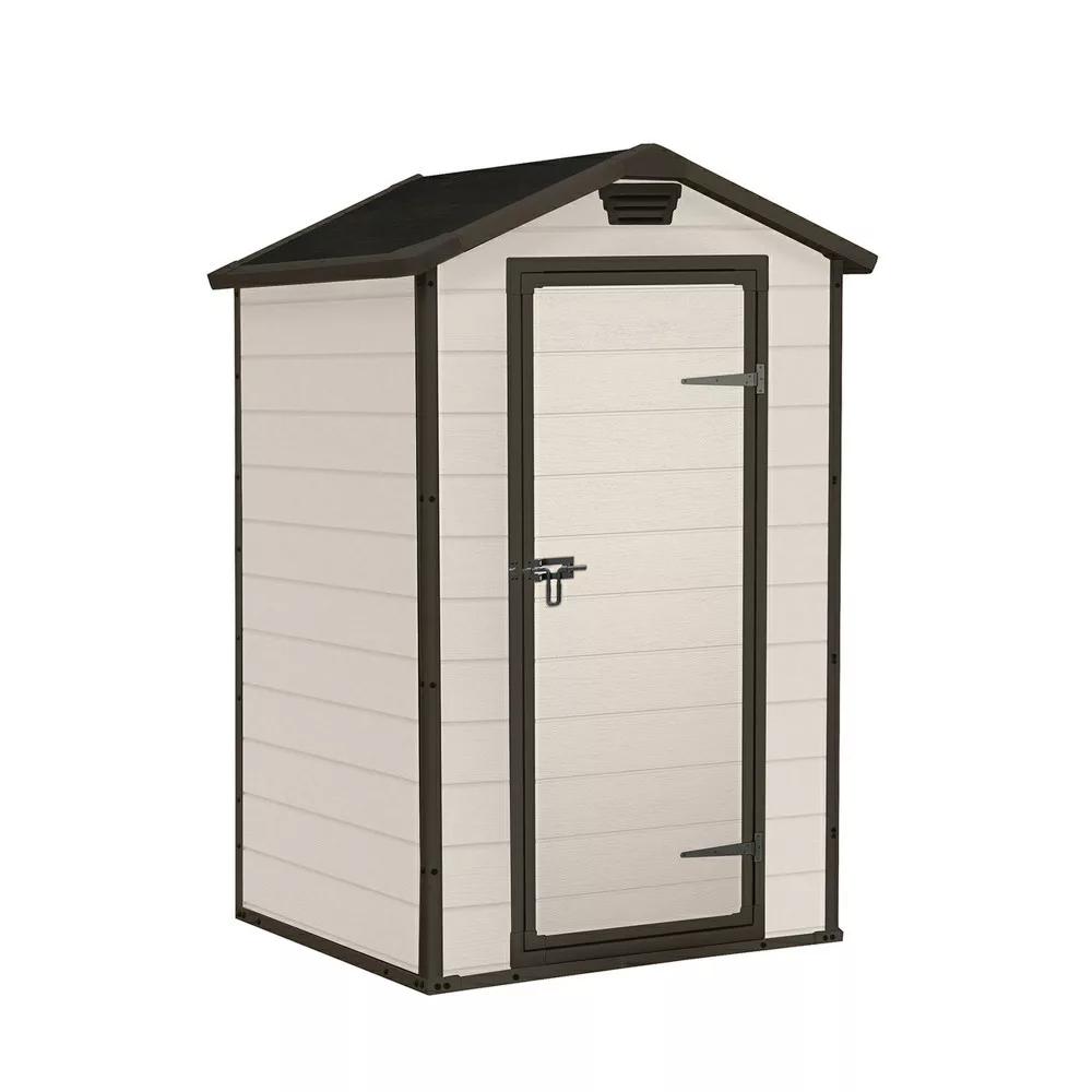 Niezwykle kompaktowy i wytrzymały schowek Manor 4x3 oferuje sprytne rozwiązanie do przechowywania w ciasnych przestrzeniach, zwłaszcza między domem a ogrodzeniem. Posiada odporną na warunki atmosferyczne, dwuścienną konstrukcję i płytę podłogową, która przechowuje przedmioty czyste i suche. Ta szopa może być bezpiecznie wentylowana, zamykana dla bezpieczeństwa i łatwo montowana przy użyciu narzędzi domowych.