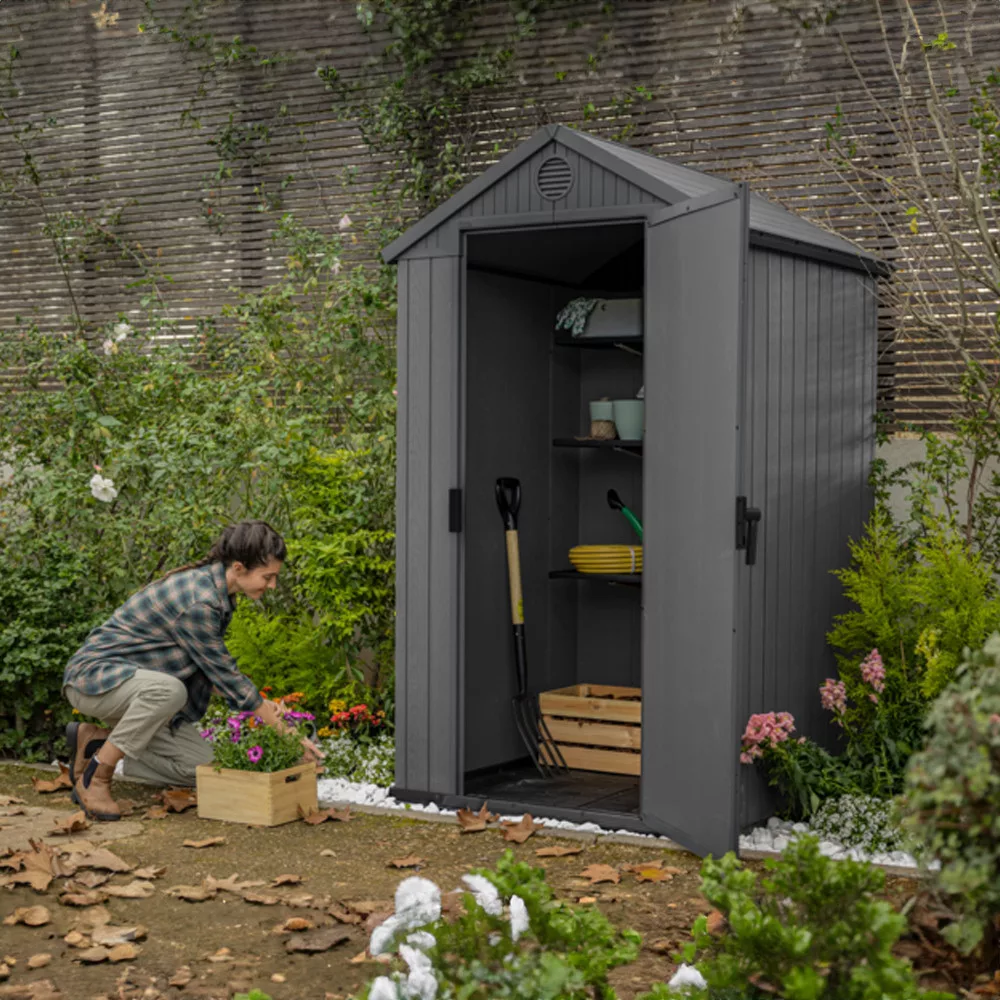 Konstrukcja domku jest również godna uwagi. Dzięki specjalnie zaprojektowanemu kompaktowemu opakowaniu jest on łatwy w transporcie, nawet w bagażniku samochodu. Montaż jest niezwykle prosty: dzięki technice łączenia rowków do montażu obudowy nie są potrzebne żadne specjalne narzędzia. W ciągu zaledwie dwóch godzin szopa narzędziowa Darwin jest gotowa do użytku, zapewniając bezpieczne i stylowe miejsce do przechowywania narzędzi ogrodowych.