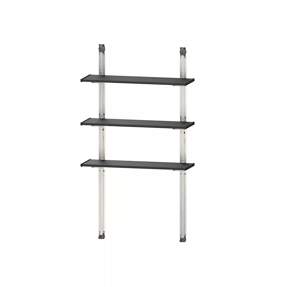Trzy wyjątkowo długie półki, każda o szerokości 97 cm, zapewniają łatwe odnalezienie wszystkich narzędzi, skrzynek i innych przedmiotów. Dzięki temu zestawowi półek możesz położyć kres bałaganowi.