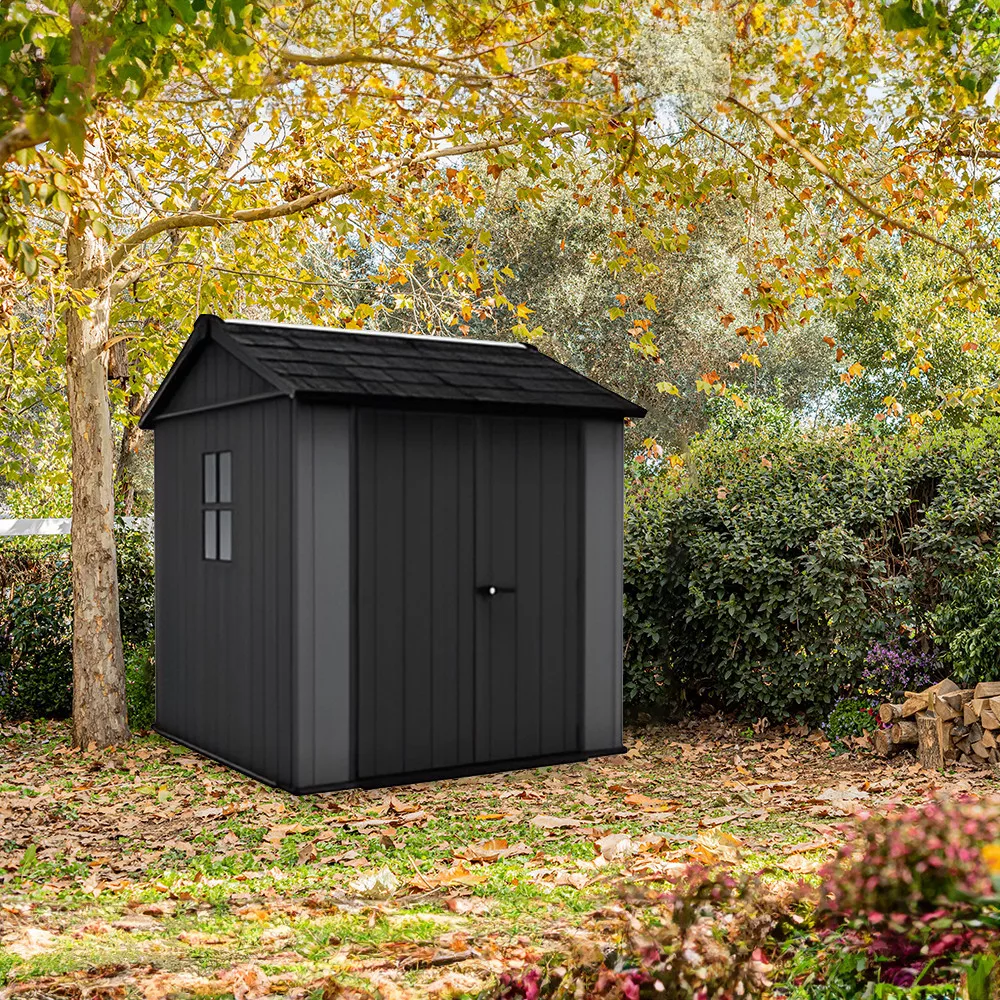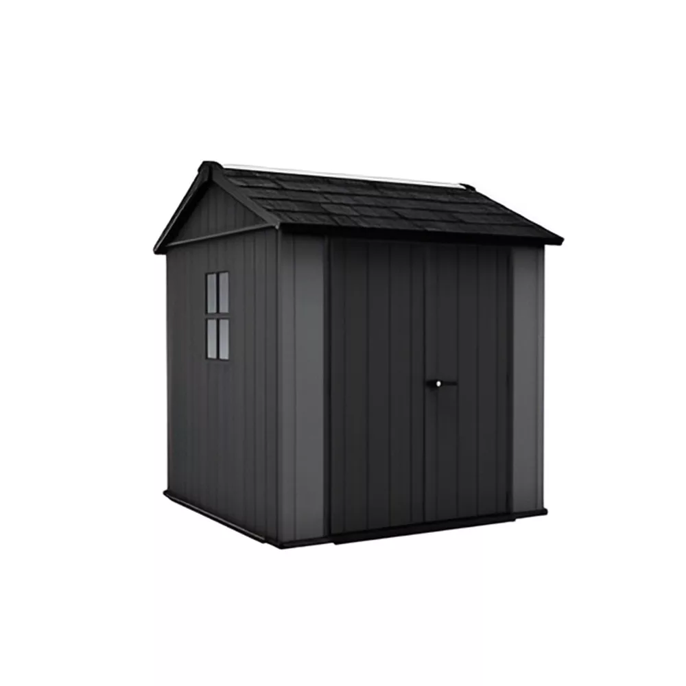 Plastikowy domek ogrodowy Newton 2.0 7x7,5 łączy nowoczesną technologię z elegancją, zapewniając wyjątkowo trwałą i stylową przestrzeń do przechowywania w ogrodzie. Ta szopa na narzędzia gwarantuje nie tylko funkcjonalność, ale także estetykę, dzięki czemu będzie ozdobą każdego ogrodu lub podwórka.