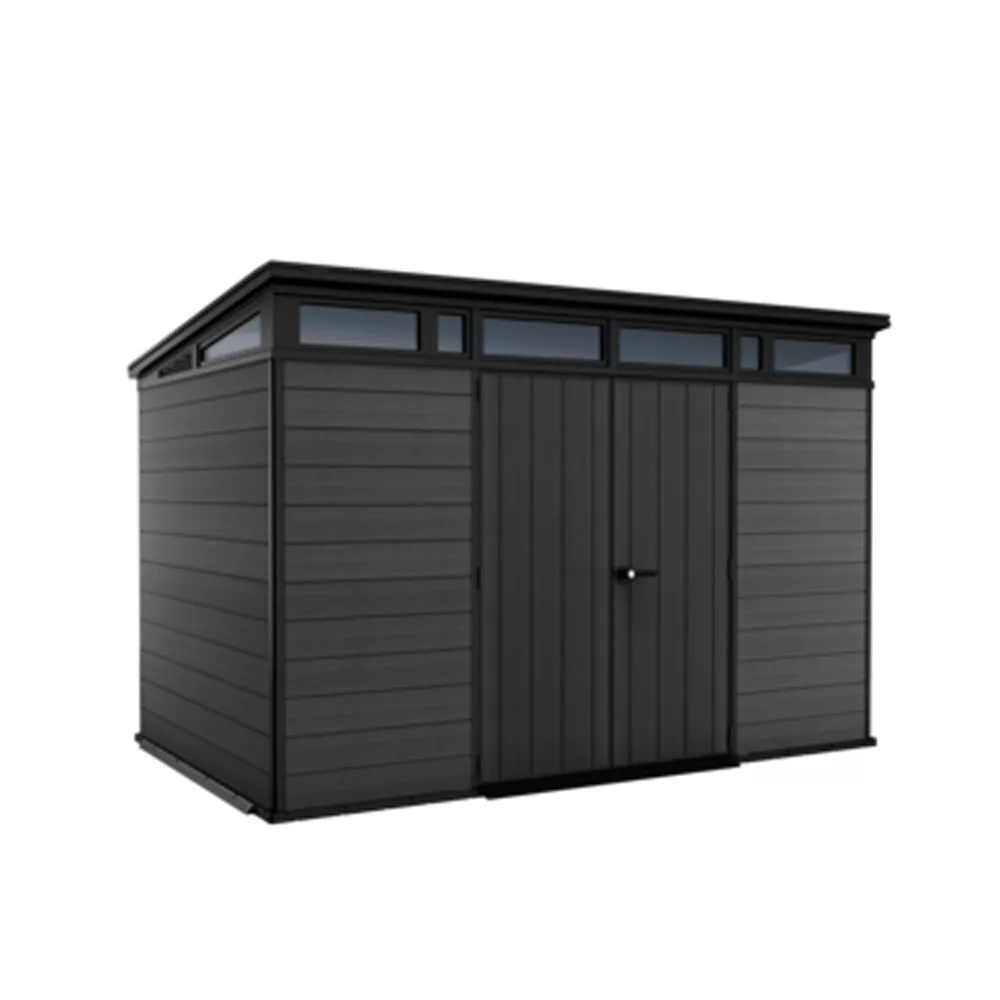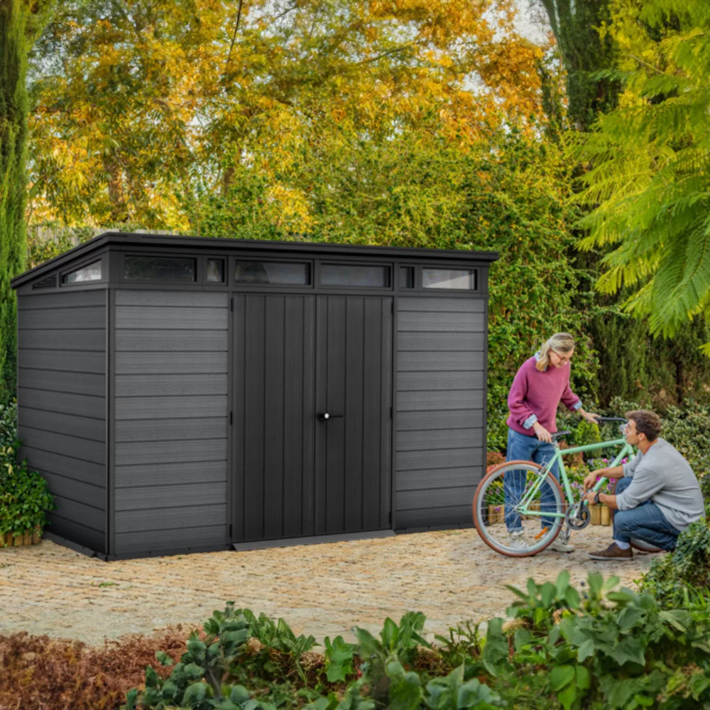 Plastikowa altana ogrodowa Cortina 2.0 11x7o nowoczesnym designie, wykonana z odpornego na warunki atmosferyczne materiału i niewymagająca konserwacji powierzchnia to trwałe rozwiązanie do przechowywania narzędzi i sprzętu ogrodowego. Wymiary produktu pozwalają wygodnie pomieścić nawet większe narzędzia.