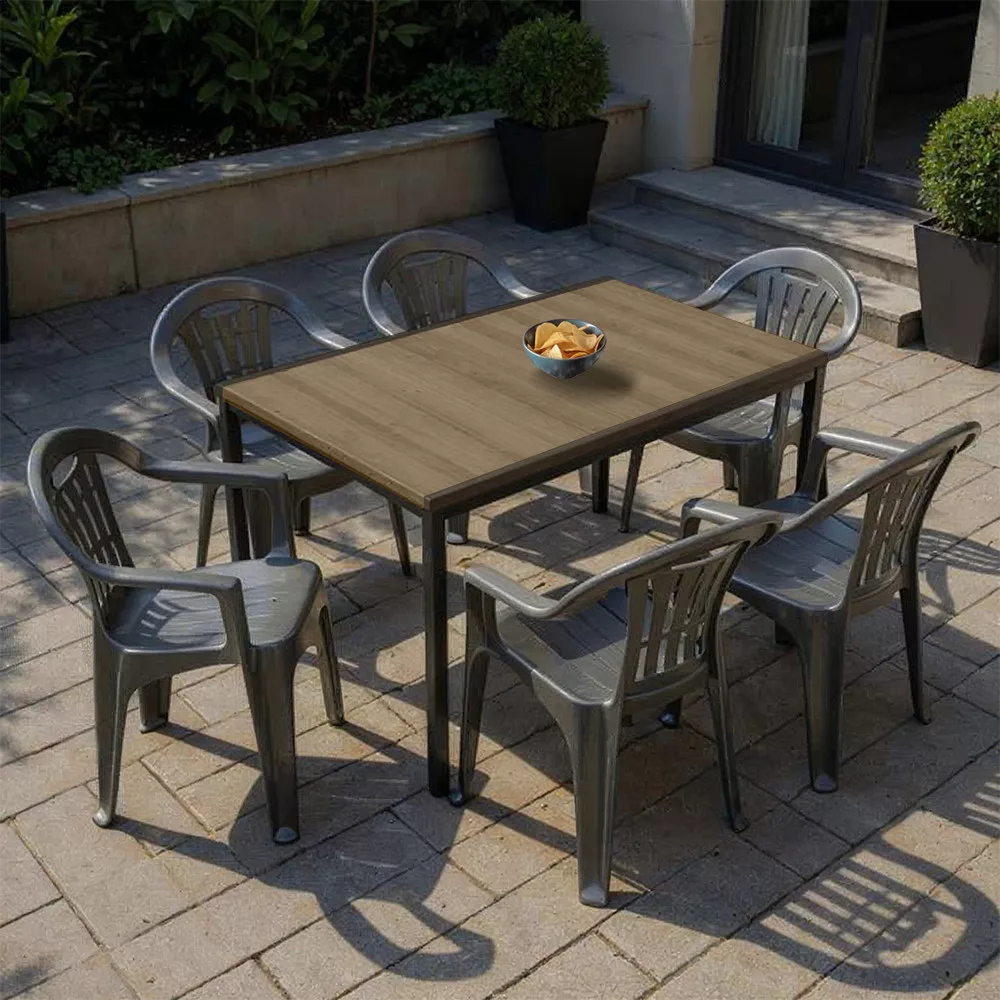 Zestaw ogrodowy Rowen 6 + 1 z tworzywa sztucznego - popiel i grafit