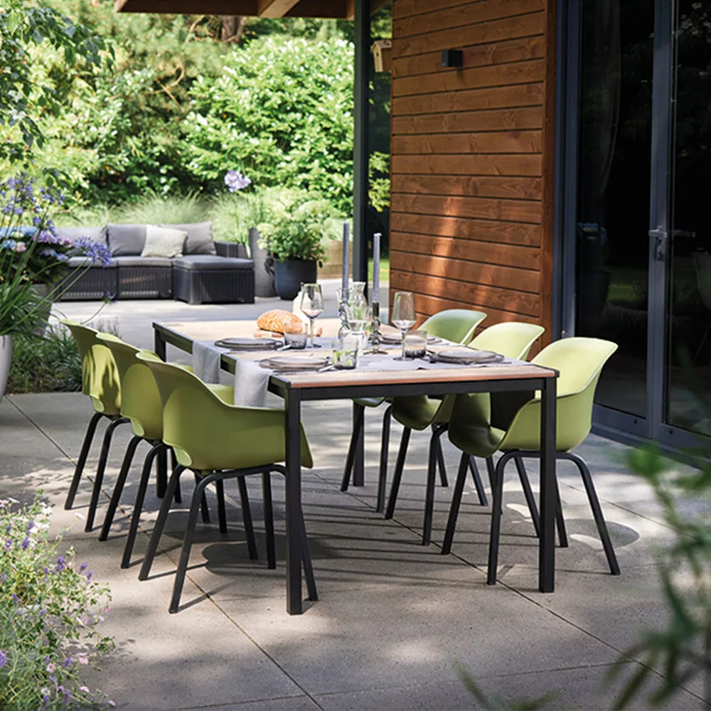 Dzięki nowoczesnemu wzornictwu i ponadczasowym materiałom dobrze komponuje się również z innymi meblami ogrodowymi - zarówno minimalistycznymi, jak i klasycznymi.