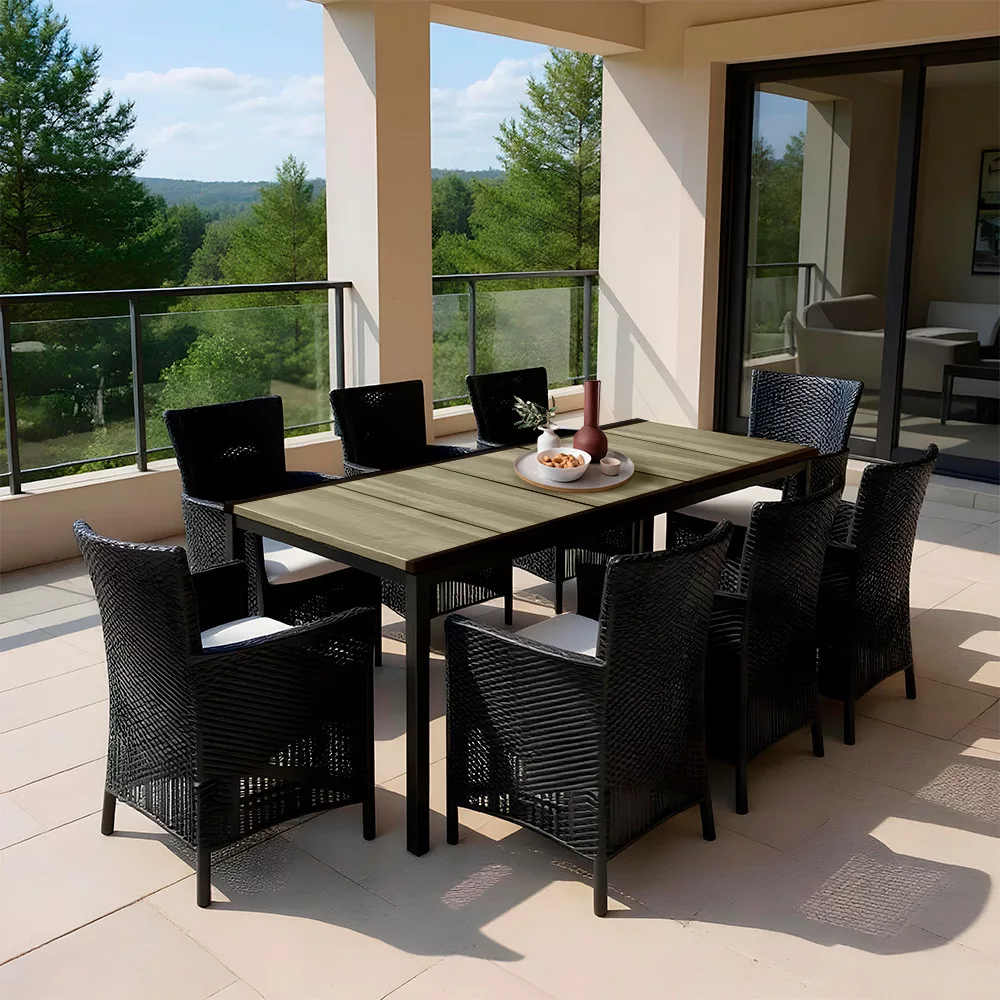 - Zestaw 8 foteli Iowa Rattan Style + 1 stół jadalniany Porto 200