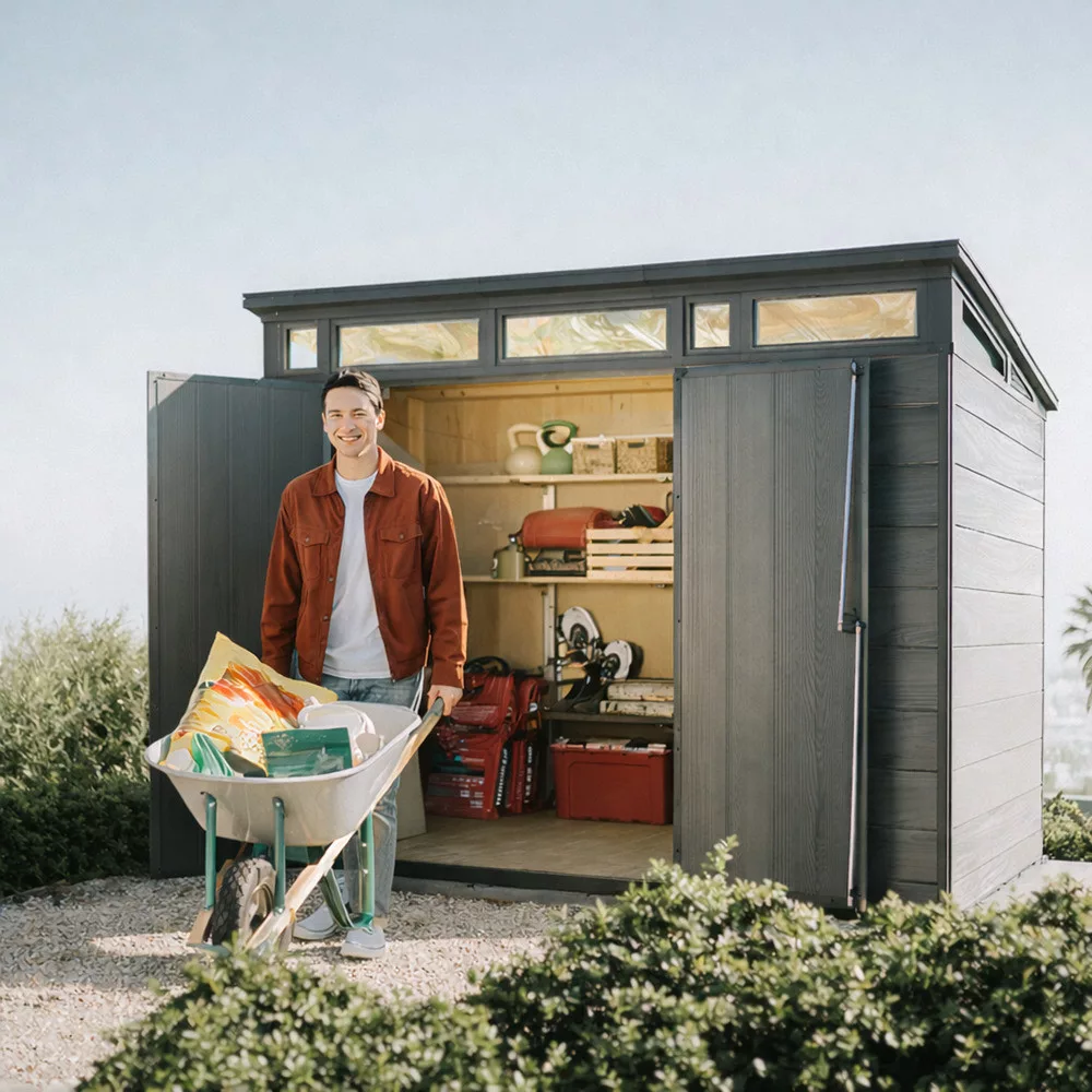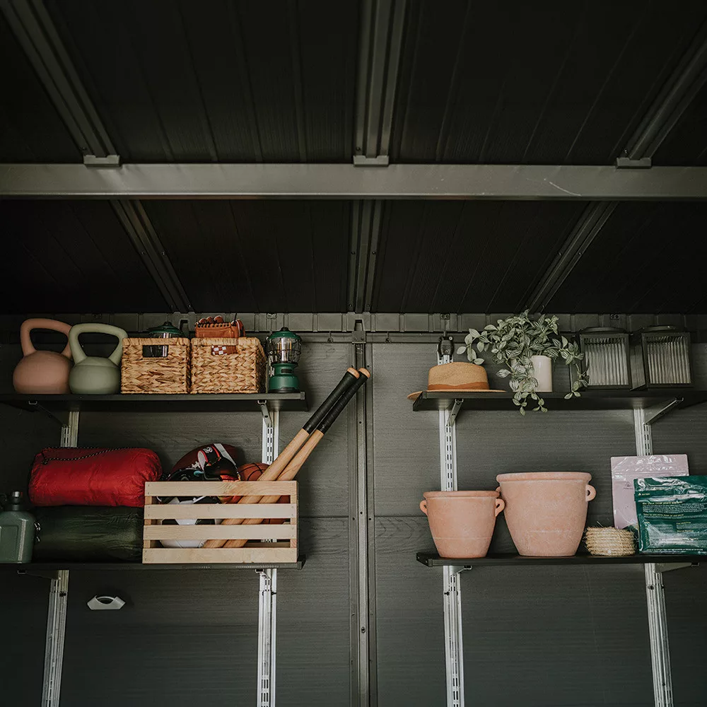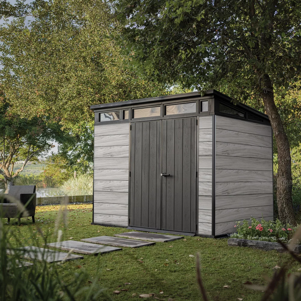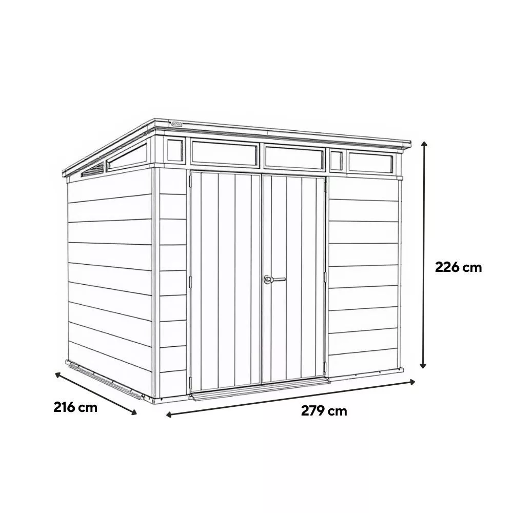 A Signature Penthouse 11x7 kerti ház a Signature Collection prémium kategóriás tárolómegoldásai közé tartozik. Modern kialakítása és természetes hatású felülete elegáns megjelenést biztosít, amely harmonikusan illeszkedik a kert környezetéhez.