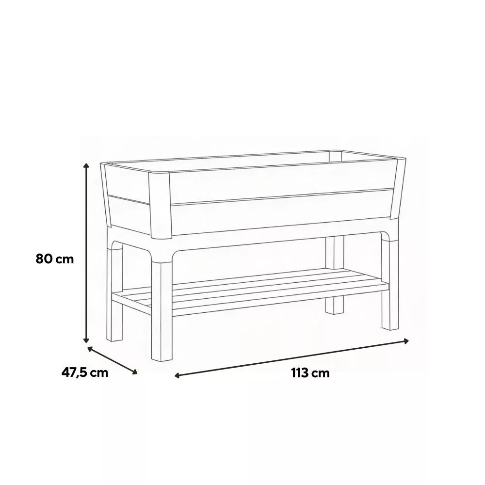Zintegrowana dolna półka oferuje dodatkowe miejsce do przechowywania ziemi doniczkowej, konewek lub narzędzi ogrodowych, dzięki czemu wszystko, czego potrzebujesz, możesz mieć pod ręką. Solidne nóżki zapewniają bezpieczne umieszczenie na różnych powierzchniach zewnętrznych, a kompaktowy rozmiar jest również idealny do mniejszych tarasów.