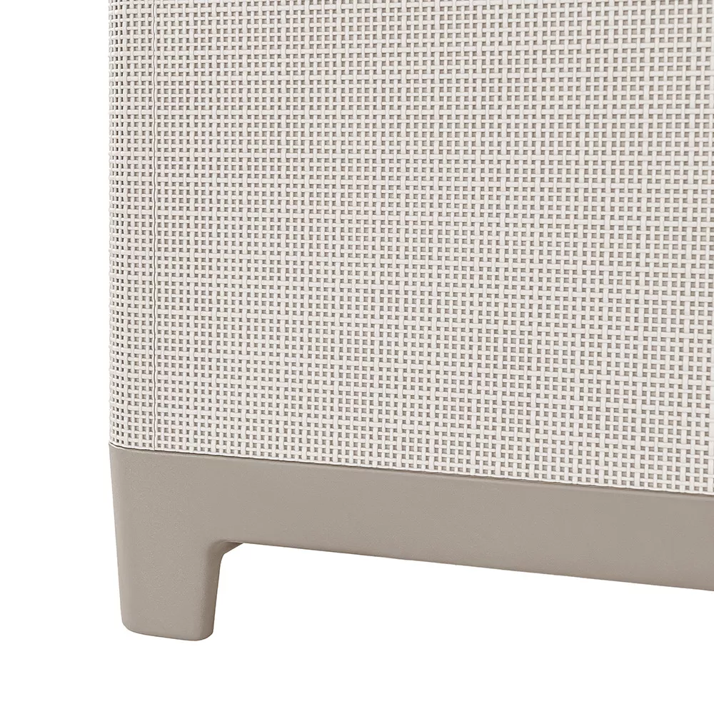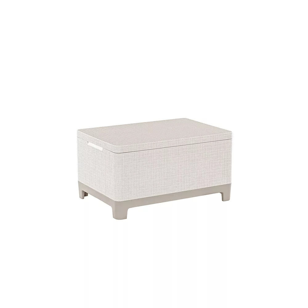 Stół do przechowywania Scandi z juty ma czysty, nowoczesny design, który pasuje do stylu kolekcji Scandi. Kamykowy szaro-beżowy odcień jest stonowany i można go łatwo łączyć z różnymi meblami i pokryciami zewnętrznymi. Kompaktowa konstrukcja pozwala na umieszczenie go na małych tarasach, balkonach lub ogrodach, zapewniając jednocześnie estetyczny wygląd jako samodzielny mebel.