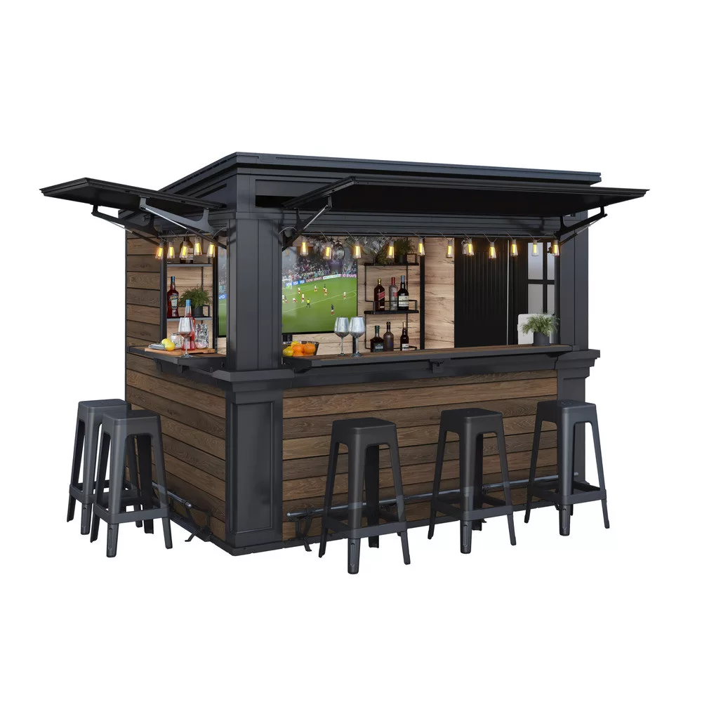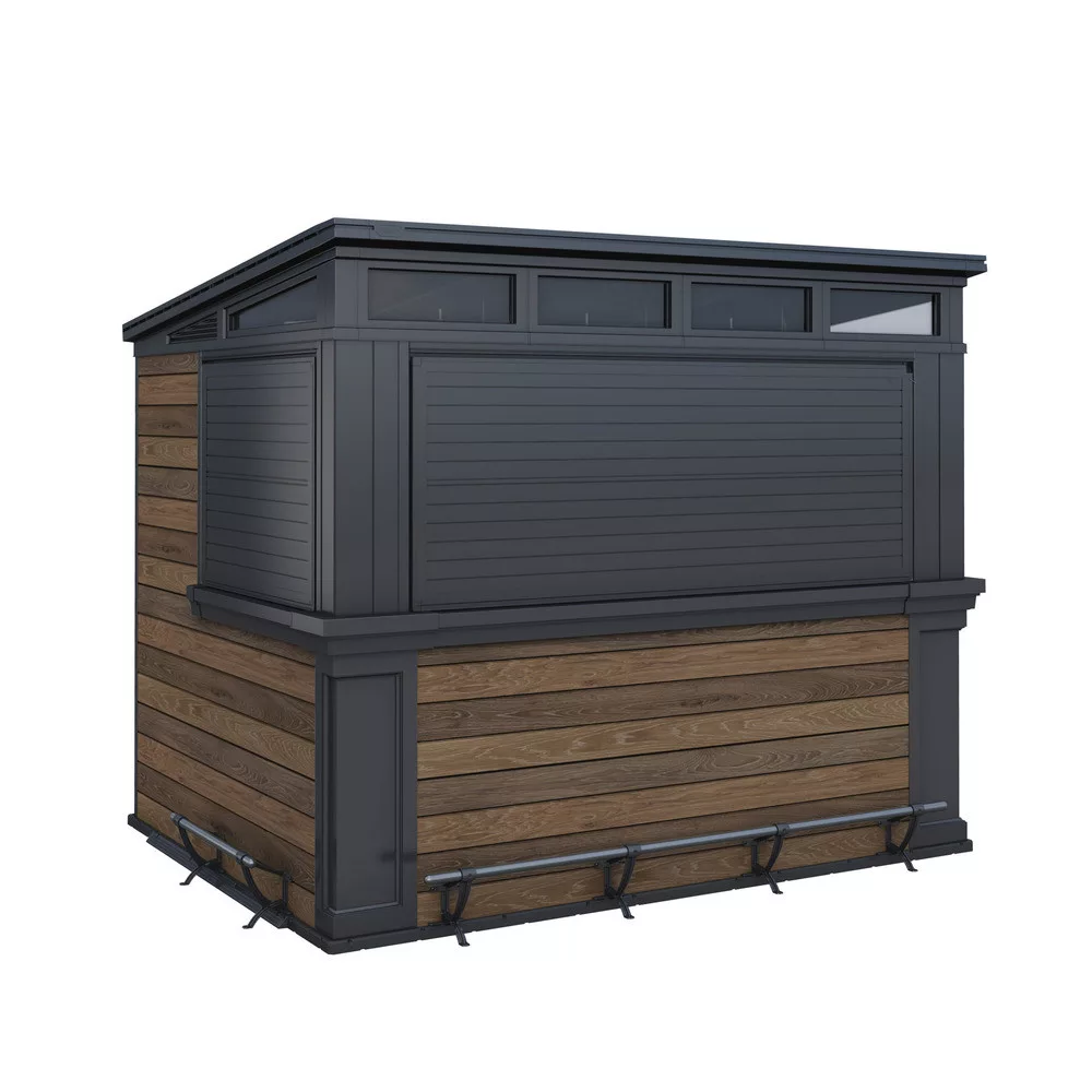 - Kialakítás: kerti bár pulttal és tárolóval