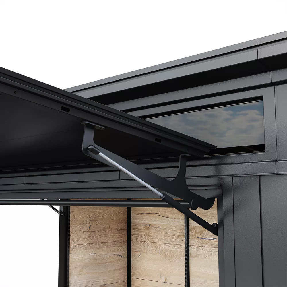 A beépített tárolórész lehetővé teszi a bárkellékek, poharak, kerti eszközök vagy egyéb kiegészítők rendszerezett elhelyezését. Így minden szükséges eszköz könnyen elérhető marad, miközben a kültéri tér rendezett és átlátható marad.