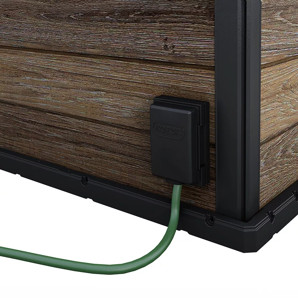 - Anyag: időjárásálló műanyag, fa hatású felület