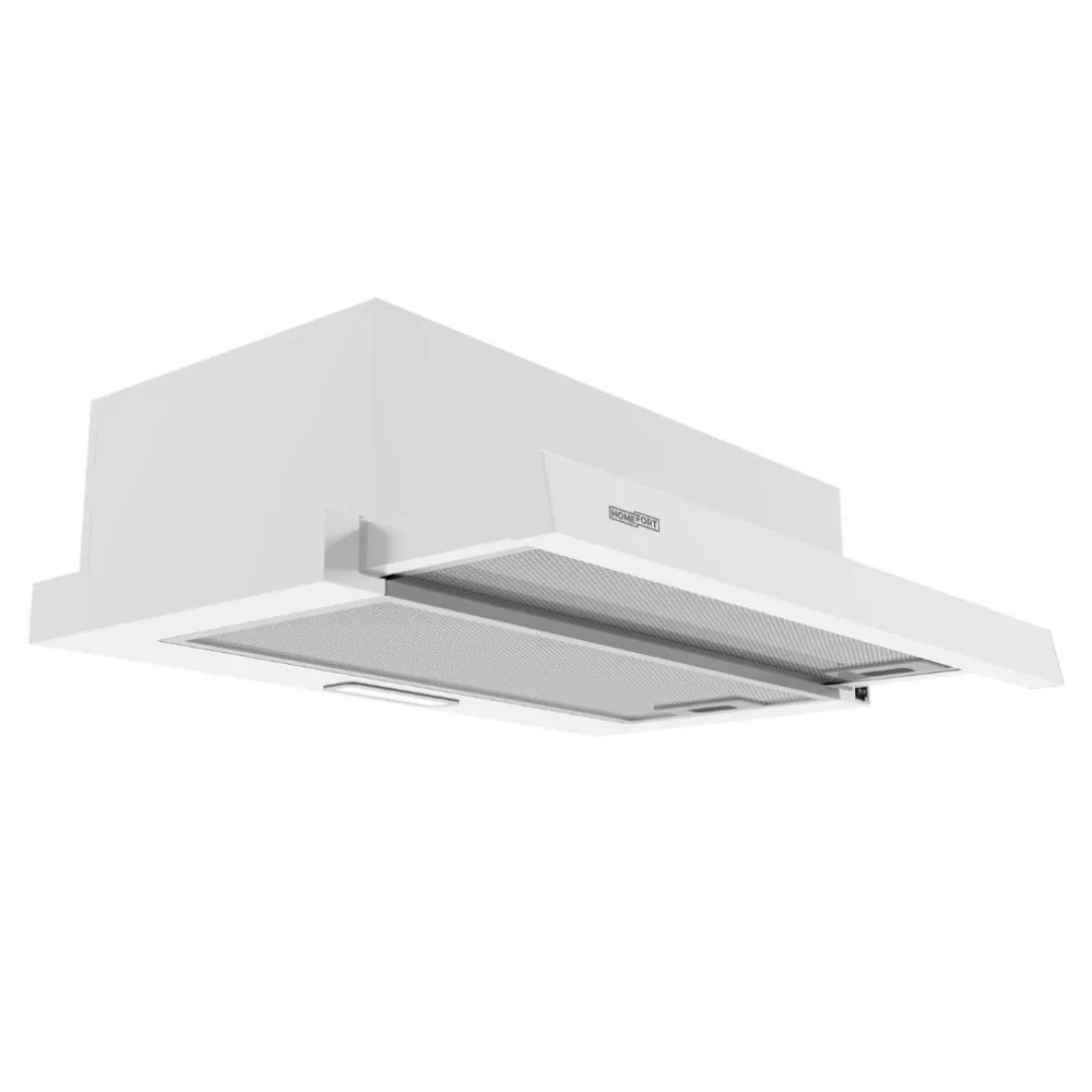 HOMEFORT HPK611W to prosty i użyteczny okap kuchenny, który będzie pięknie wyglądał w Twojej kuchni dzięki eleganckiemu białemu wykończeniu.