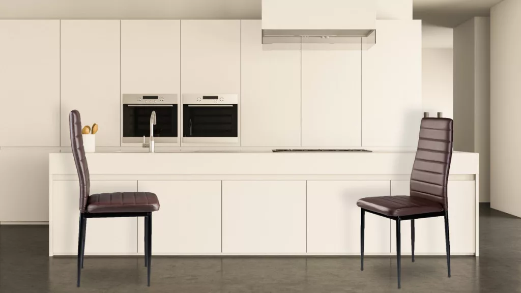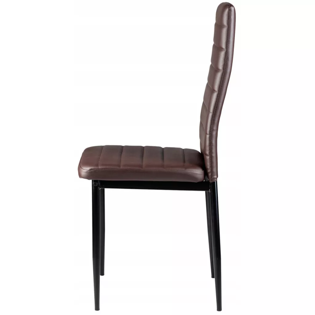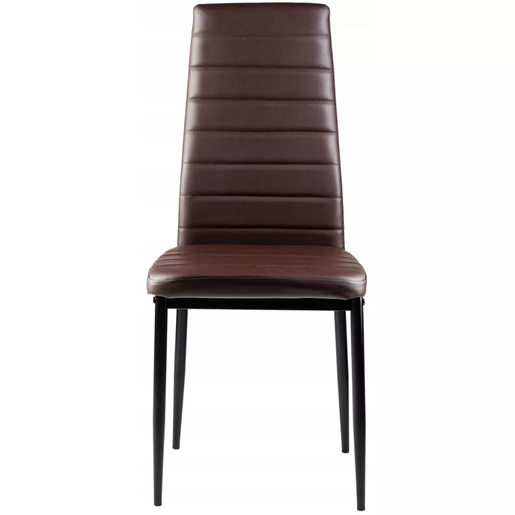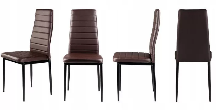 Krzesła te doskonale uzupełnią stół jadalniany w Twoim domu. Brązowa tapicerka z miękkiej ekoskóry w połączeniu z czarnymi prostymi nogami nadaje im efektowny wygląd, który dobrze wkomponuje się w każdy rodzaj wnętrza, nadając mu niepowtarzalnego charakteru.