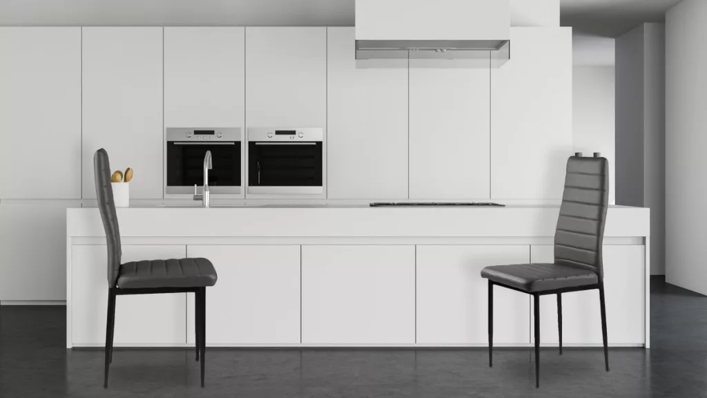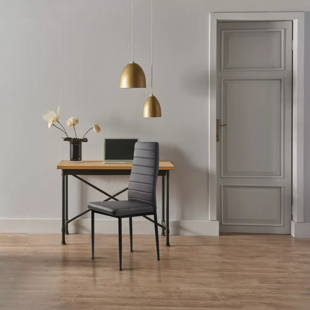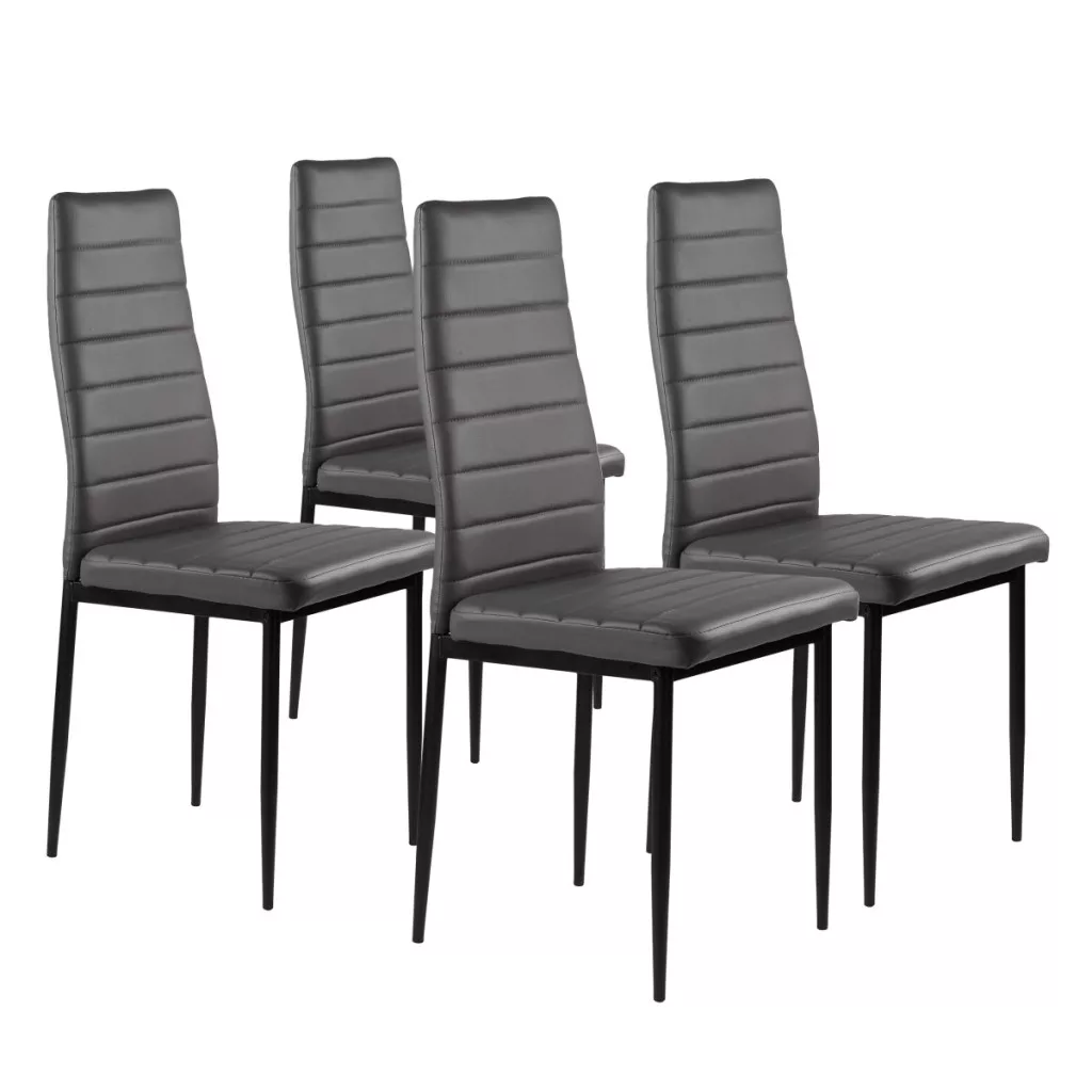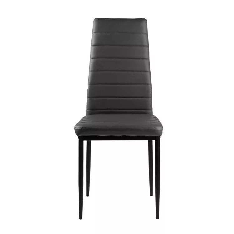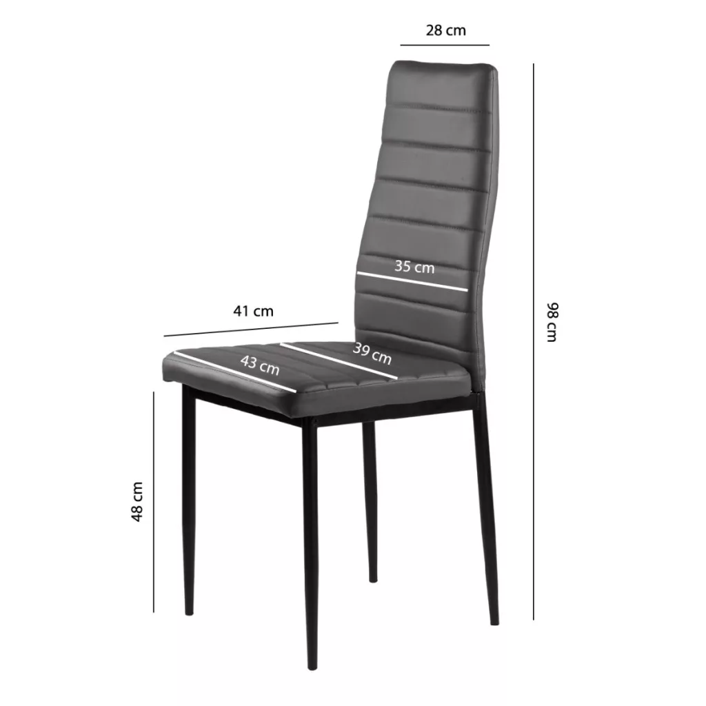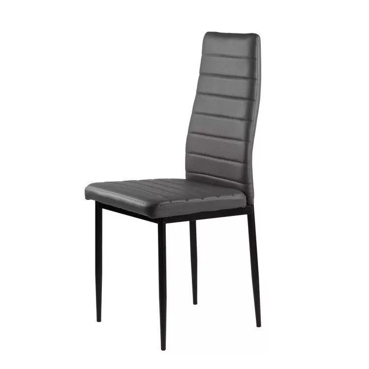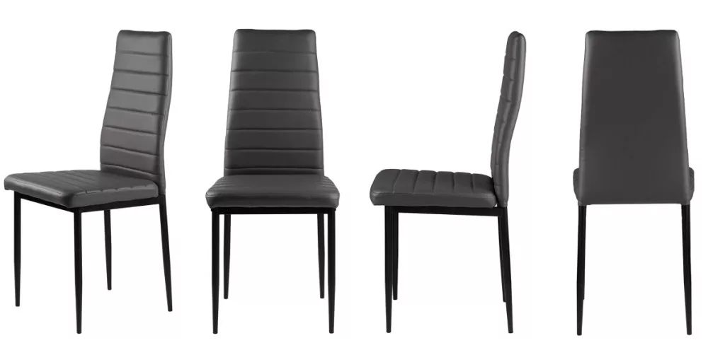 Te krzesła doskonale uzupełnią stół w kuchni lub jadalni. Szara tapicerka z miękkiej ekoskóry w połączeniu z czarnymi, czystymi nogami tworzą ciekawy kontrast, dzięki czemu będą stylowym dodatkiem do każdego wnętrza, nadając mu niepowtarzalnego charakteru.