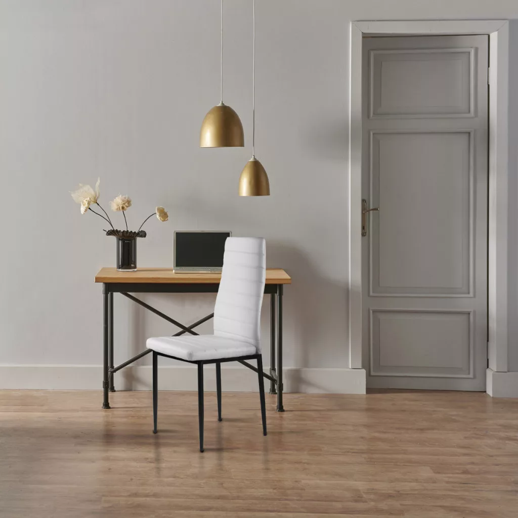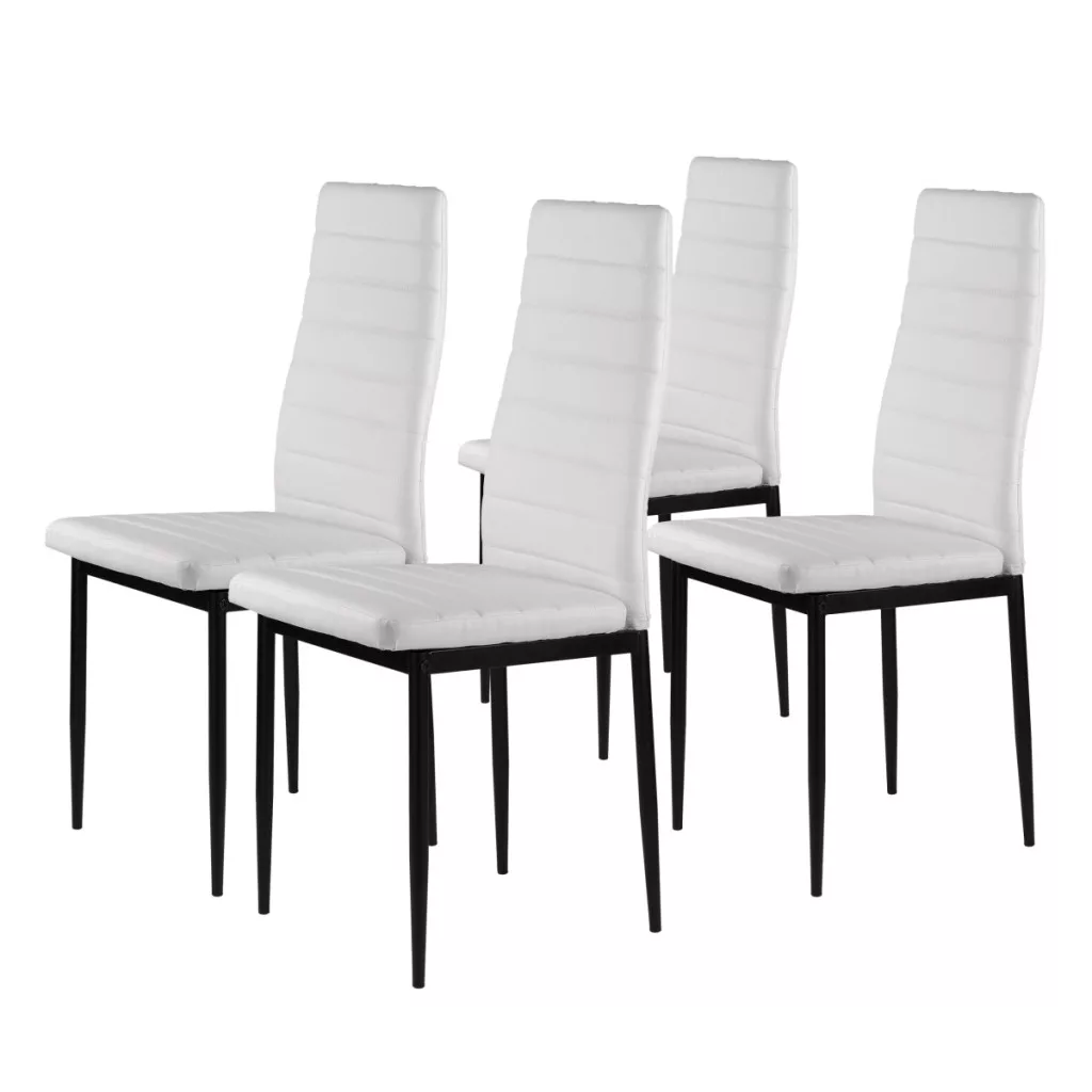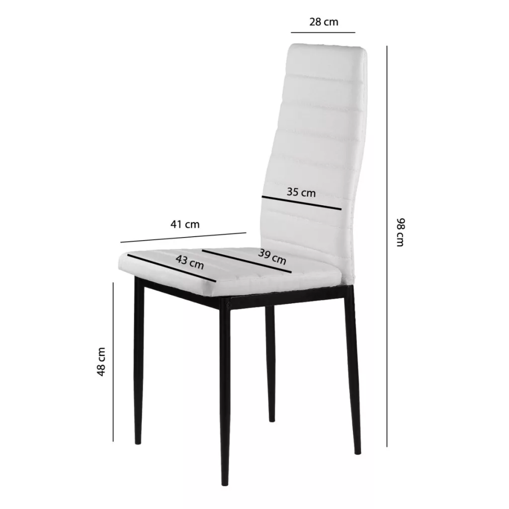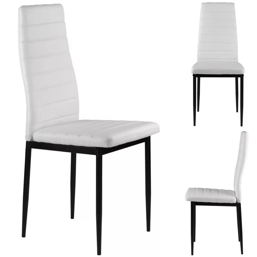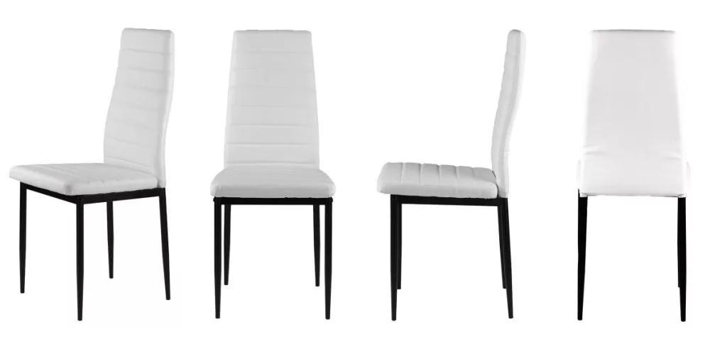Krzesła te doskonale uzupełnią stół w kuchni lub jadalni. Biała tapicerka z miękkiej ekoskóry i czarne, proste nogi tworzą stylowy kontrast, dzięki czemu krzesła te będą świetnym dodatkiem do każdego wnętrza, nadając mu niepowtarzalnego charakteru.