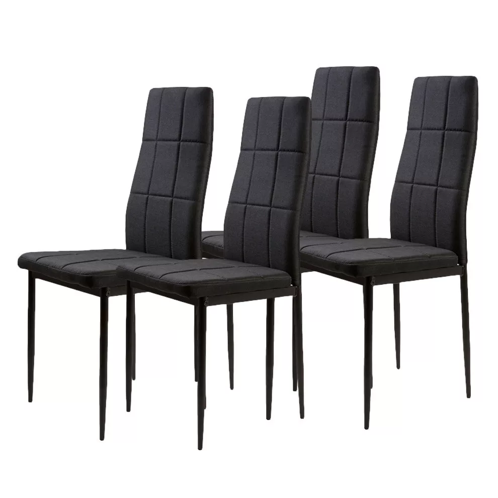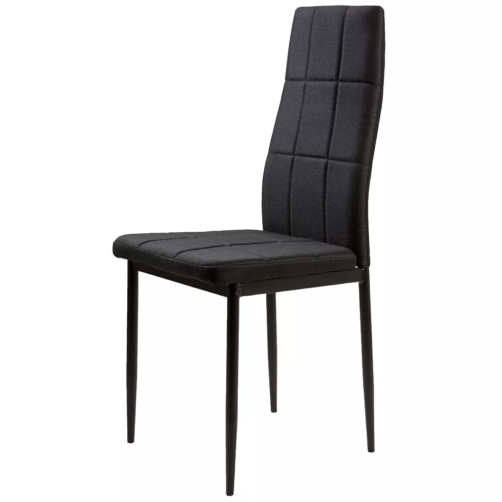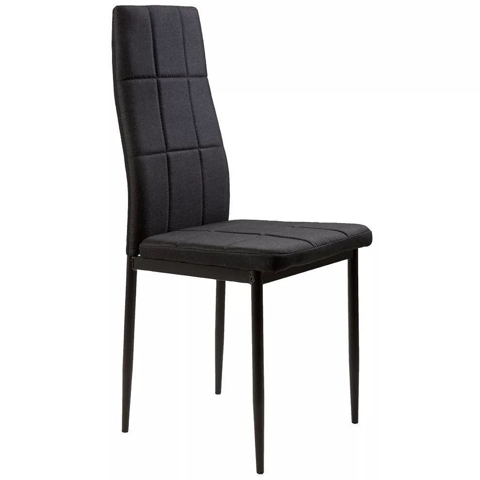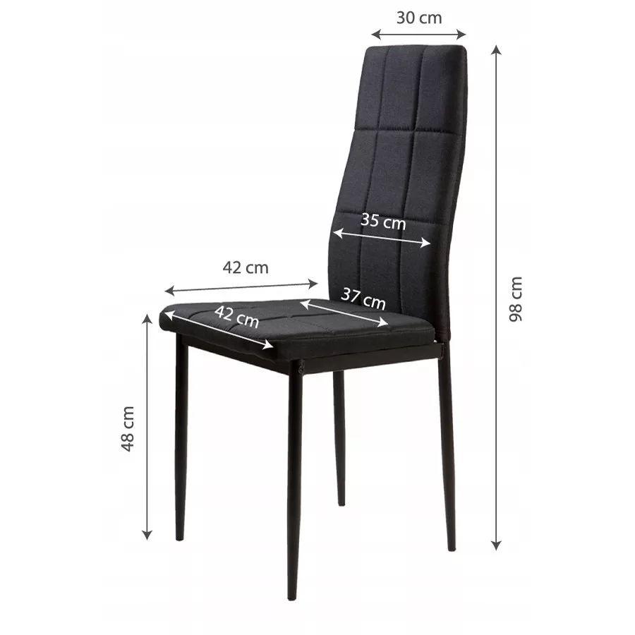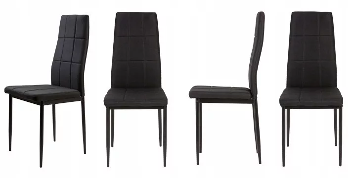 Te krzesła doskonale uzupełnią stół w jadalni lub kuchni. Czarna, pikowana tapicerka z miękkiej w dotyku tkaniny wpasuje się w każde wnętrze i doda mu elegancji.