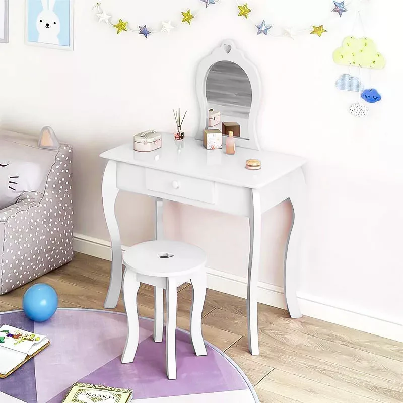 Przedstawiamy tę uroczą toaletkę dla dziewczynek, która olśni każdą małą księżniczkę. Ta fantastyczna toaletka została zaprojektowana z myślą o wygodzie i zabawie, tworząc specjalne miejsce, w którym dzieci mogą cieszyć się czasem tylko dla siebie. Toaletka będzie wyglądać świetnie w każdym pokoju małej dziewczynki, z dużym, pięknym lustrem, szufladą na akcesoria i wygodnym podnóżkiem.