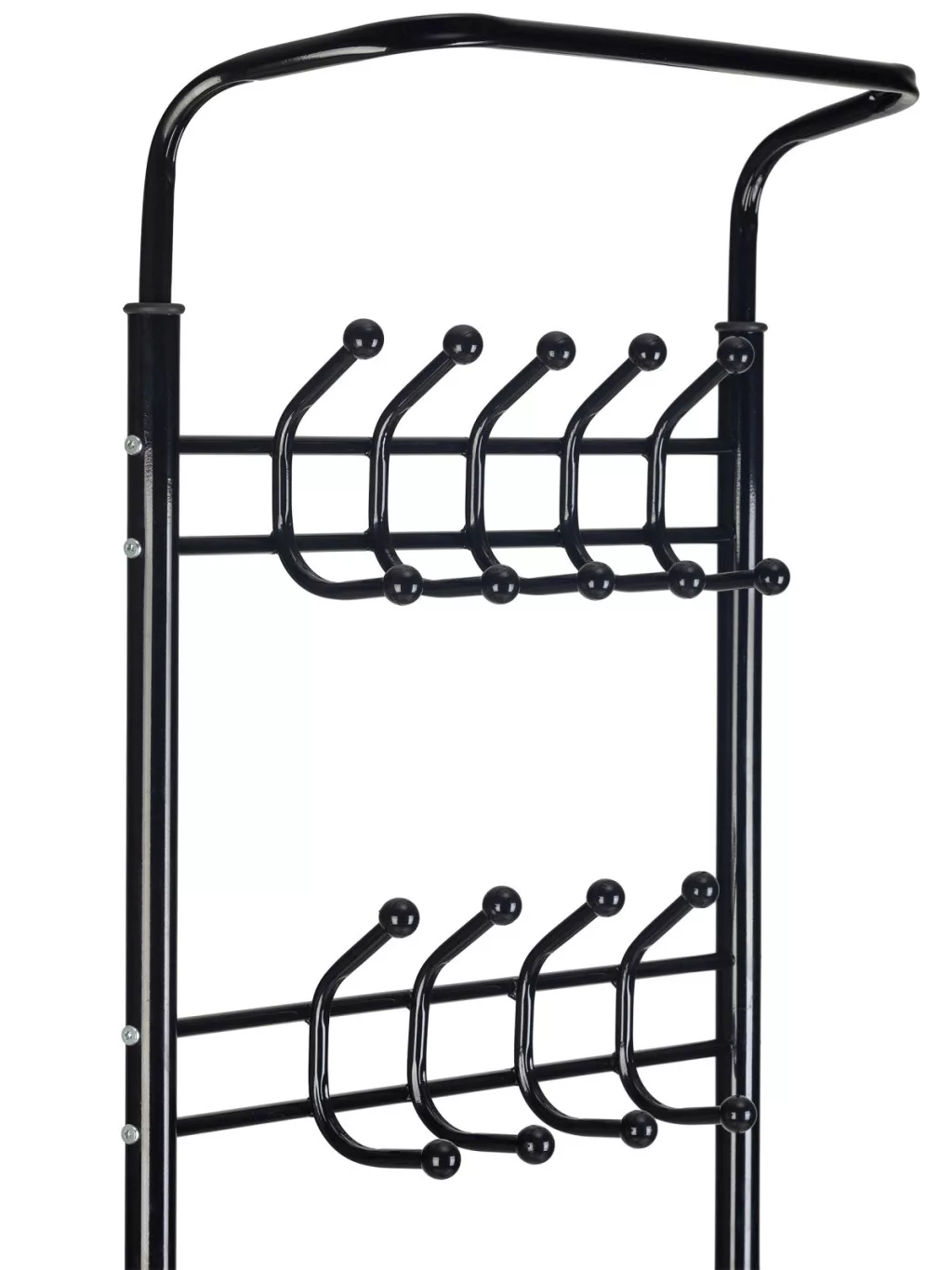 Dwa rzędy po 18 wieszaków w górnej części, idealne do domowej garderoby, biura czy poczekalni dzięki dużej liczbie wieszaków.