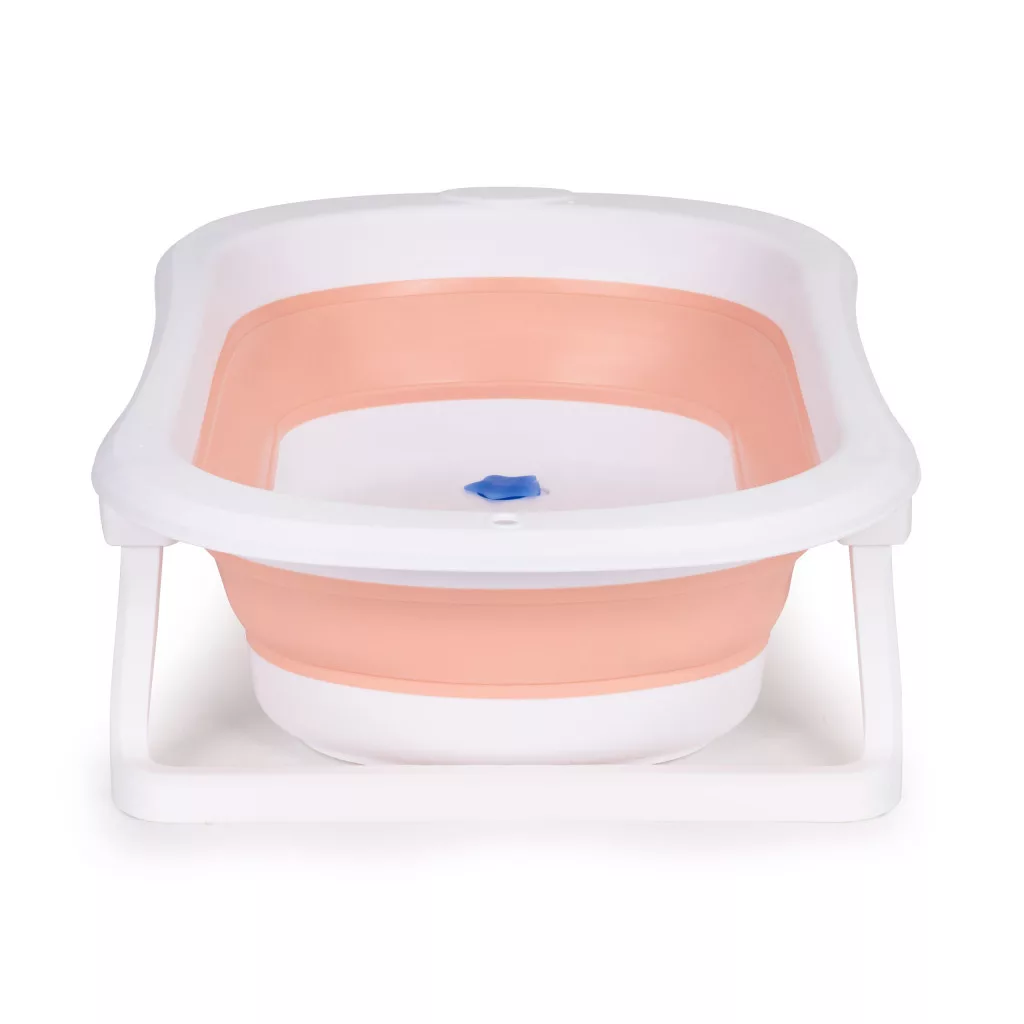 Złożenie lub otwarcie wanienki zajmuje tylko chwilę. Po rozłożeniu nóżek należy nacisnąć dno i wanna jest gotowa do użycia. Z jednej strony znajduje się mały otwór do zawieszenia wanny.