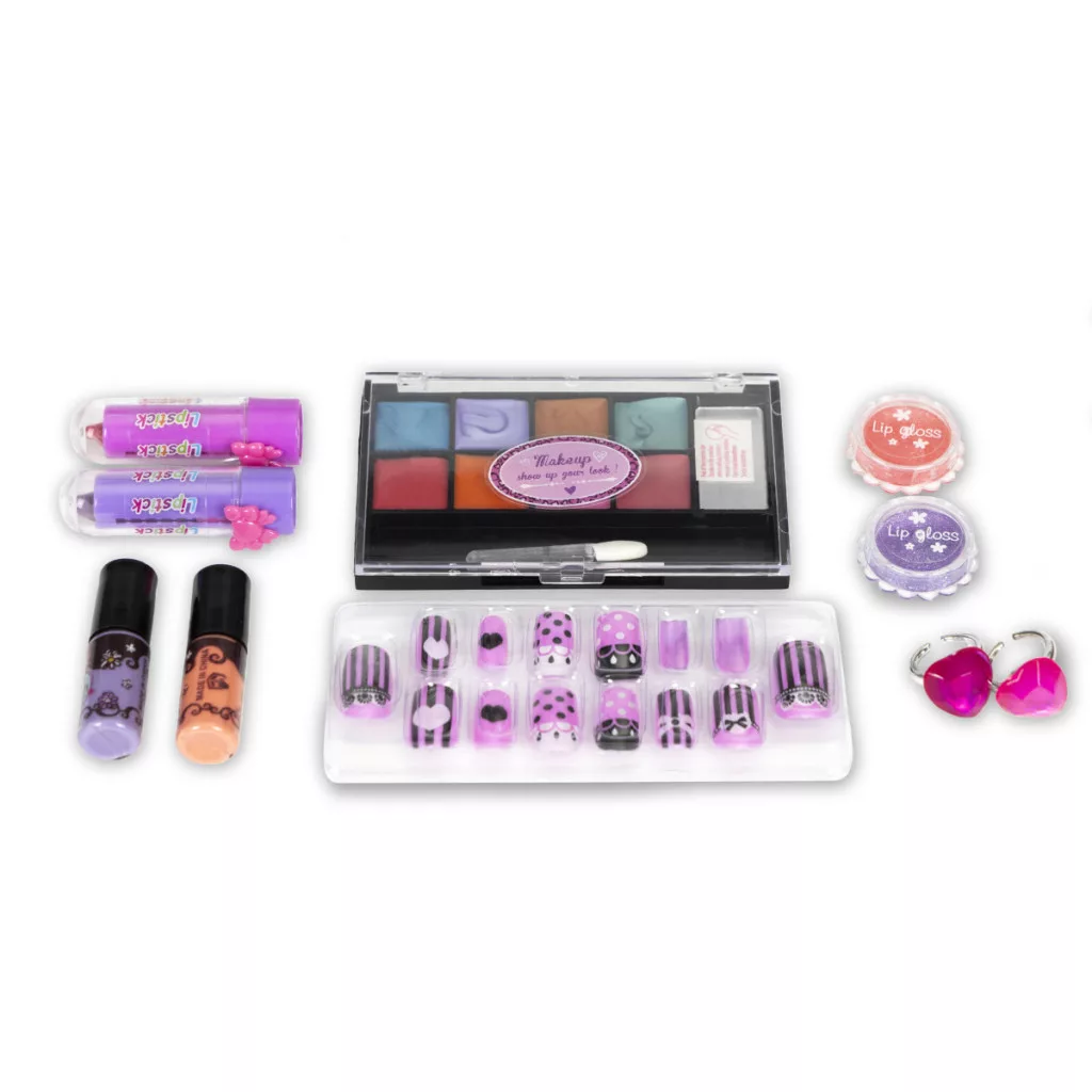 Pudełko pełne kosmetyków, błyszczyków, cieni do powiek, szminek i końcówek do zabawy może sprawić, że zabawa w domowe spa nie będzie miała końca, a precyzja wykonania perfekcyjnego makijażu nie będzie problemem.