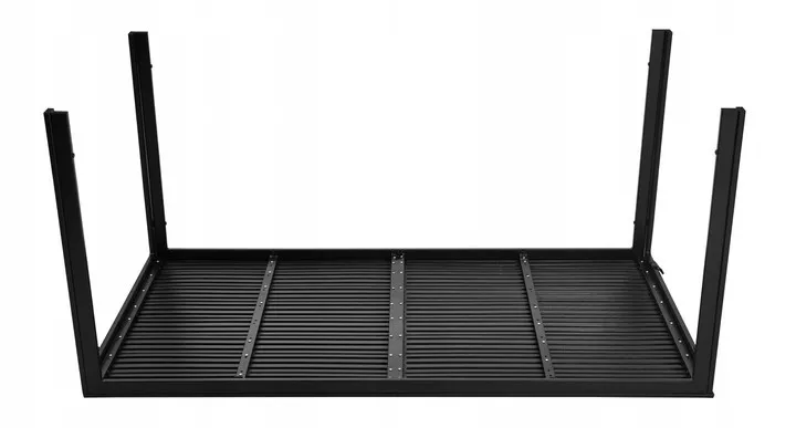 Rama wykonana jest z metalowych profili, dzięki czemu konstrukcja pozostaje stabilna i nie odkształca się jak ramy plastikowe. Blat jest wzmocniony od spodu poprzecznymi profilami nośnymi, które dodają sztywności i zapewniają doskonałą trwałość.