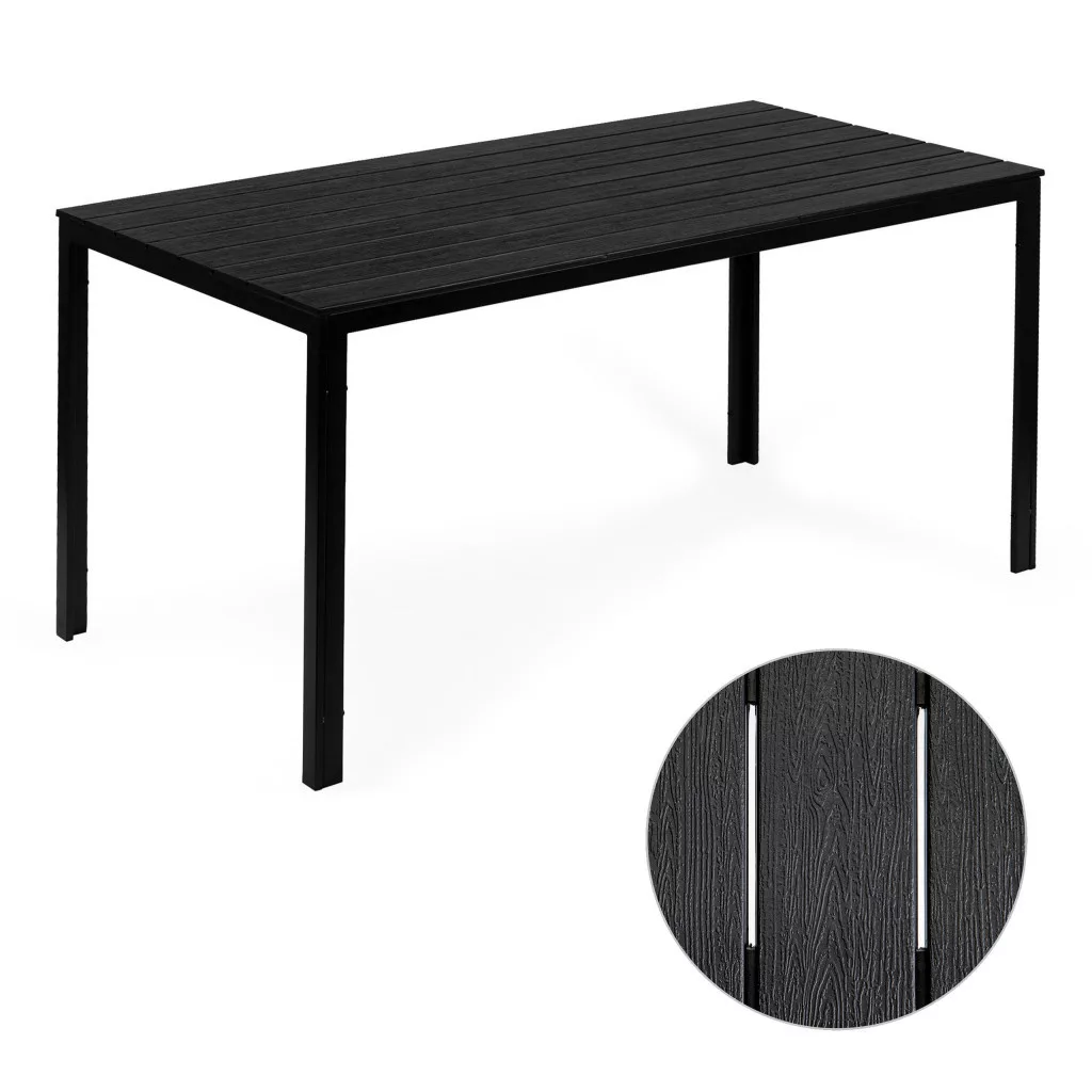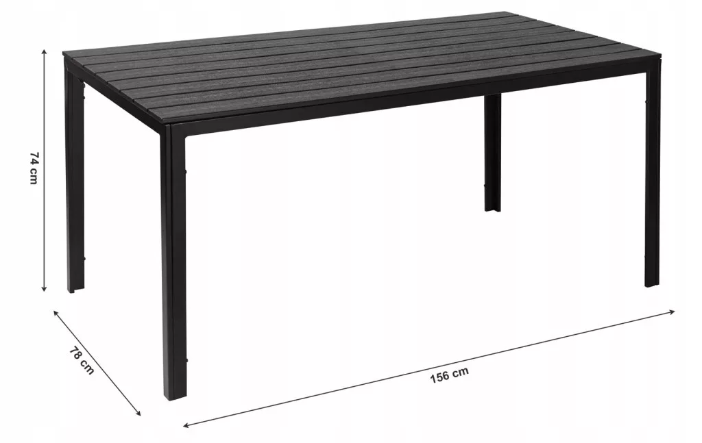Blat wykonany jest ze specjalnego materiału odpornego na warunki atmosferyczne, o fakturze i wyglądzie imitującym prawdziwe drewno, co nadaje mu niepowtarzalny charakter. Dodatkowo, niewielkie szczeliny między listwami umożliwiają odprowadzanie wody podczas deszczu.