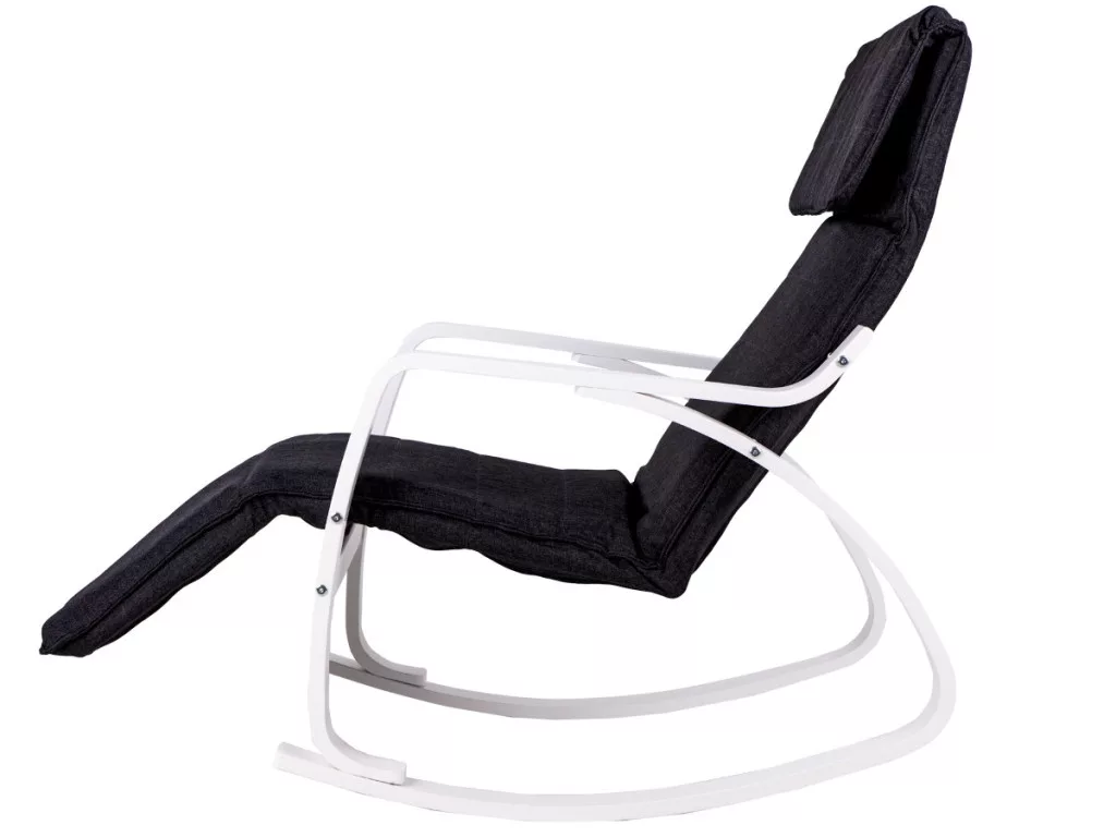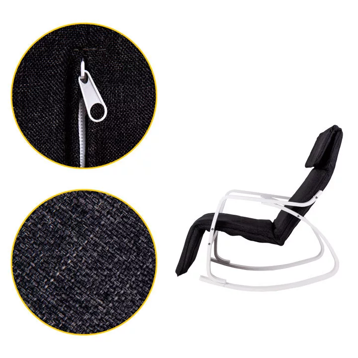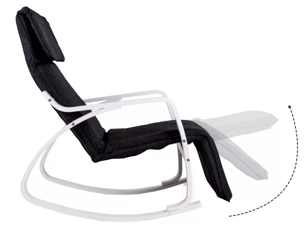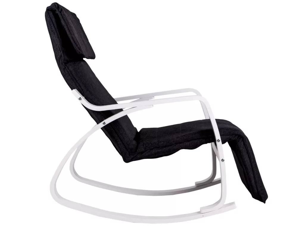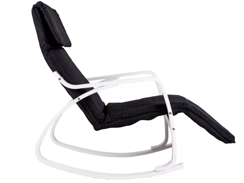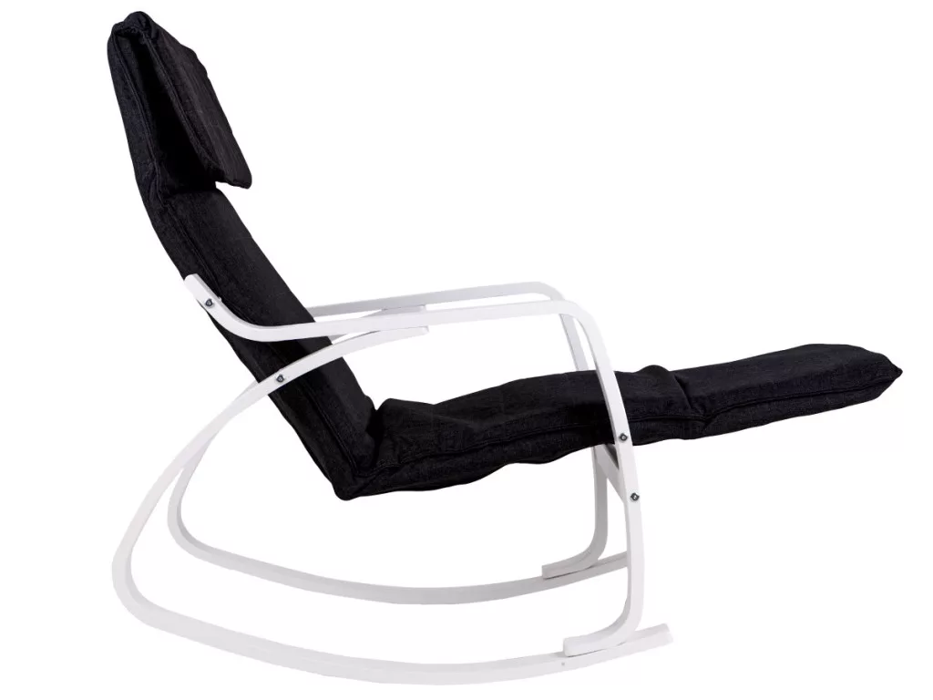 Fotel bujany ModernHome pozwala się zrelaksować, delikatne bujanie koi nerwy, wygodne oparcie wspiera zmęczony kręgosłup, a podwójny zagłówek pozwala odpocząć i rozluźnić mięśnie karku.