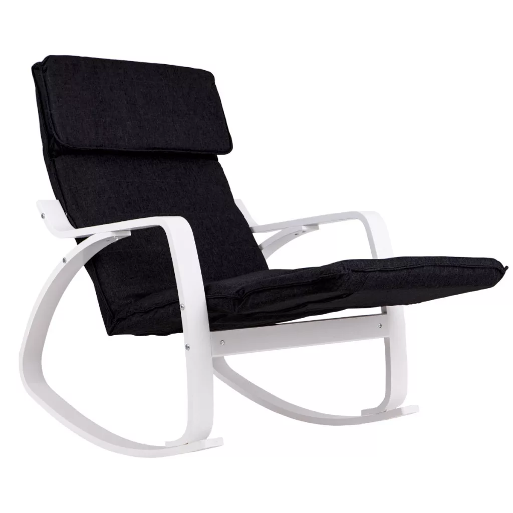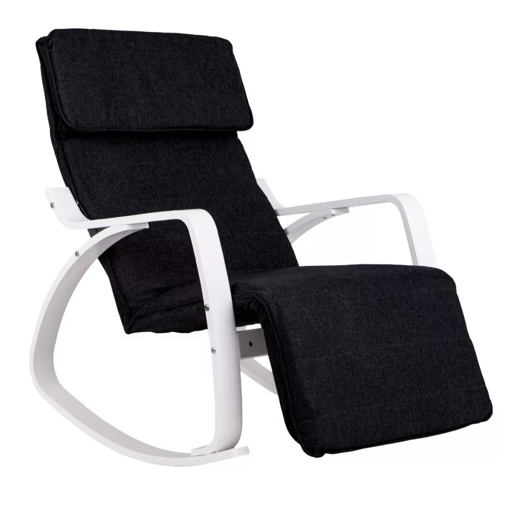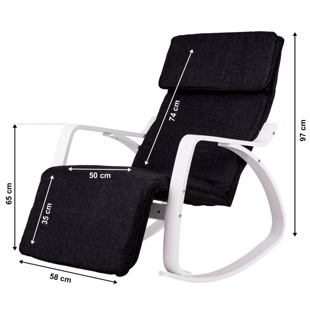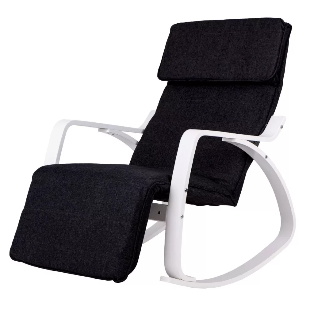 Fotel bujany ModernHome pozwala się zrelaksować, delikatne bujanie koi nerwy, wygodne oparcie wspiera zmęczony kręgosłup, a podwójny zagłówek pozwala odpocząć i rozluźnić mięśnie karku.