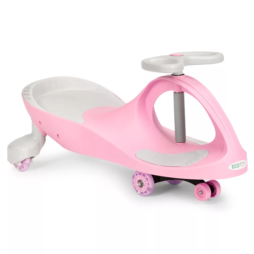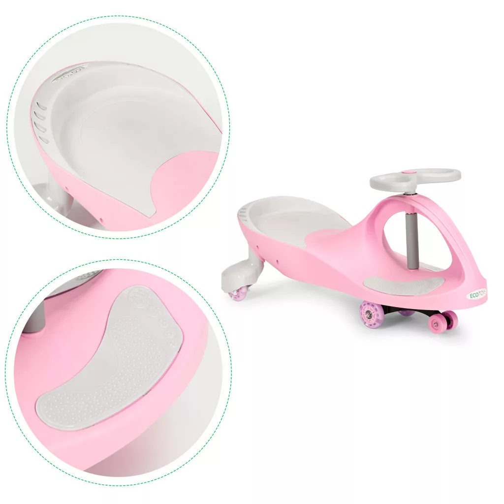 Obrotowy samochód ECOTOYS to świetna zabawka nawet dla najmłodszych dzieci. Małe dzieci mogą wykorzystać swoją energię, aby wprawić samochód w ruch bez konieczności używania nóg. Specjalny system jezdny pozwala dziecku poruszać się poprzez naprzemienne przesuwanie kierownicy w lewo i w prawo. Taka zabawa będzie miała **pozytywny wpływ** na rozwój motoryczny i zmysł równowagi dziecka.