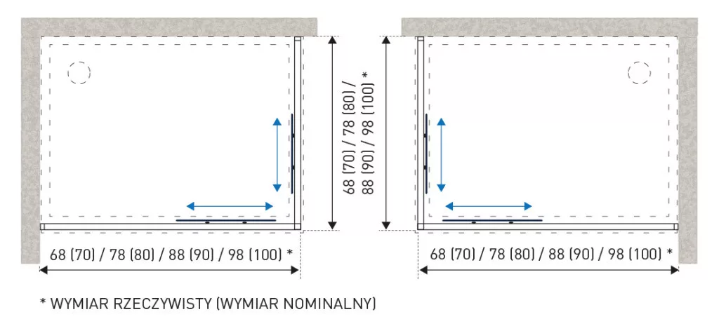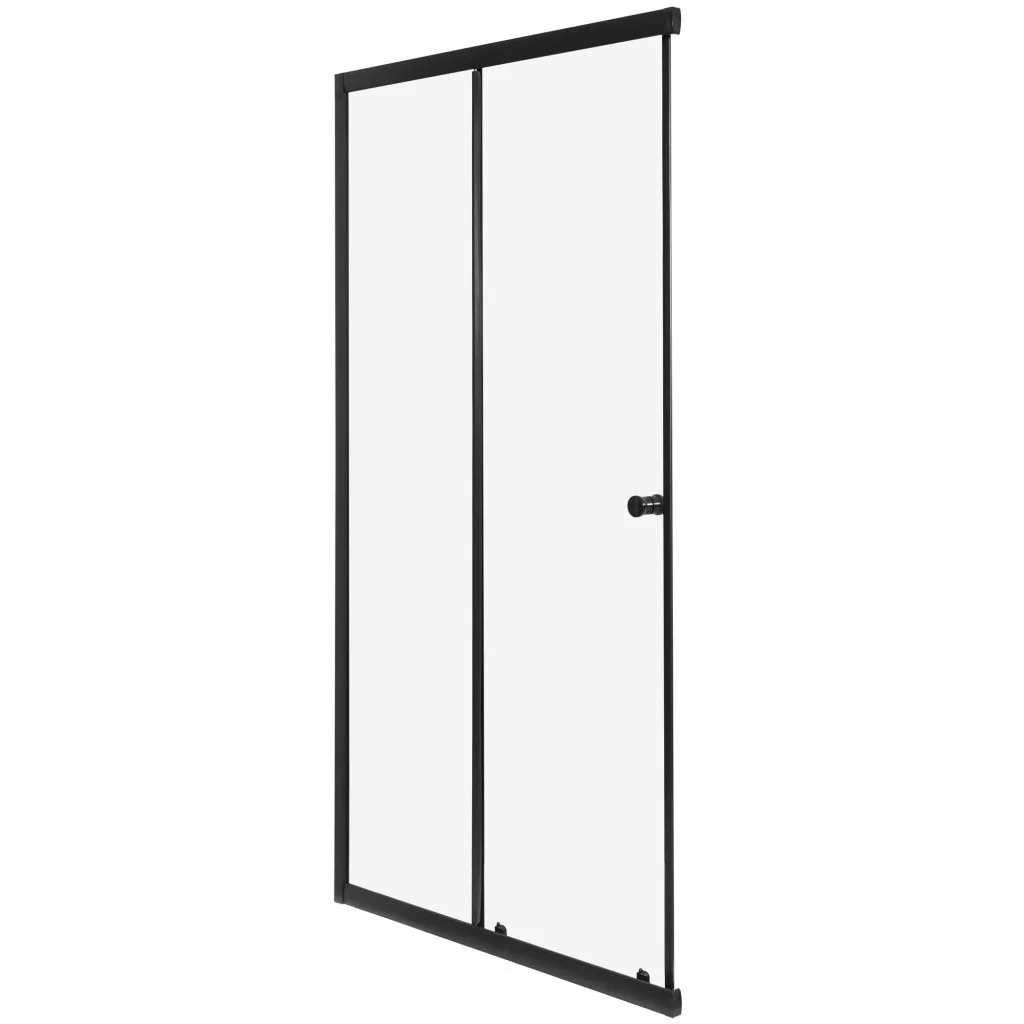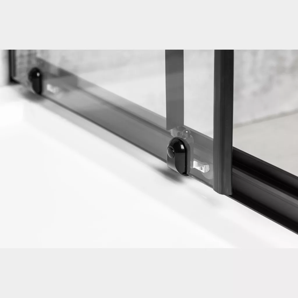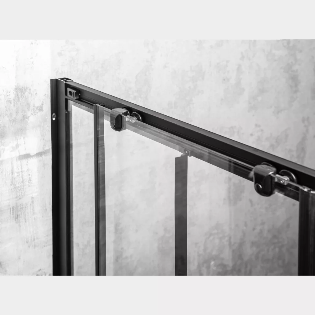 Profile: aluminium, czarneDrzwi: przesuwneSzkło: 4 mm, hartowane, przezroczyste