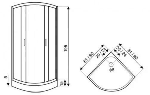 - 100×80 cm, 120×80 cm, 120×90 cm (íves, téglalap alakú kabinok esetén)