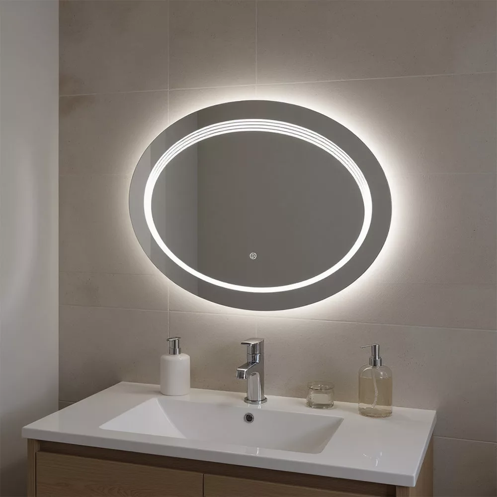 Lustro łazienkowe Ria 80 z oświetleniem LED - owalne, 80×80 cm